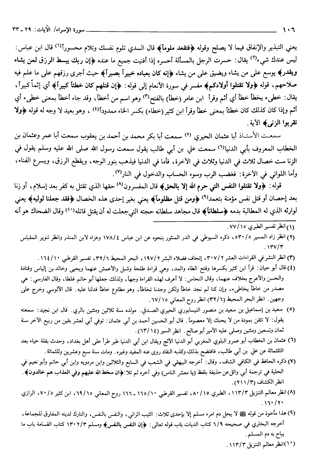 قوله: {وَلا تَقْتُلُوا النَّفْسَ الَّتِي حَرَّمَ اللَّهُ إِلا بِالْحَقِّ} [الإسراء: 33] قال المفسرون: حقها الذي تقتل به كفر بعد إسلام، أو زنا بعد إحصان، أو قتل نفس مؤمنة بتعمد.