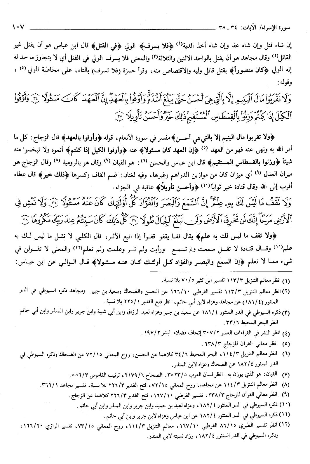 وقوله: {وَلا تَقْرَبُوا مَالَ الْيَتِيمِ إِلا بِالَّتِي هِيَ أَحْسَنُ حَتَّى يَبْلُغَ أَشُدَّهُ وَأَوْفُوا بِالْعَهْدِ إِنَّ الْعَهْدَ كَانَ مَسْئُولا {34} وَأَوْفُوا الْكَيْلَ إِذَا كِلْتُمْ وَزِنُوا بِالْقِسْطَاسِ الْمُسْتَقِيمِ ذَلِكَ خَيْرٌ وَأَحْسَنُ تَأْوِيلا {35} } [الإسراء: 34-35] {وَلا تَقْرَبُوا مَالَ الْيَتِيمِ إِلا بِالَّتِي هِيَ أَحْسَنُ} [الإسراء: 34] مفسر فِي { [الأنعام، قوله: وأوفوا بالعهد قال الزجاج: كل ما أمر الله به ونهى عنه فهو من العهد.