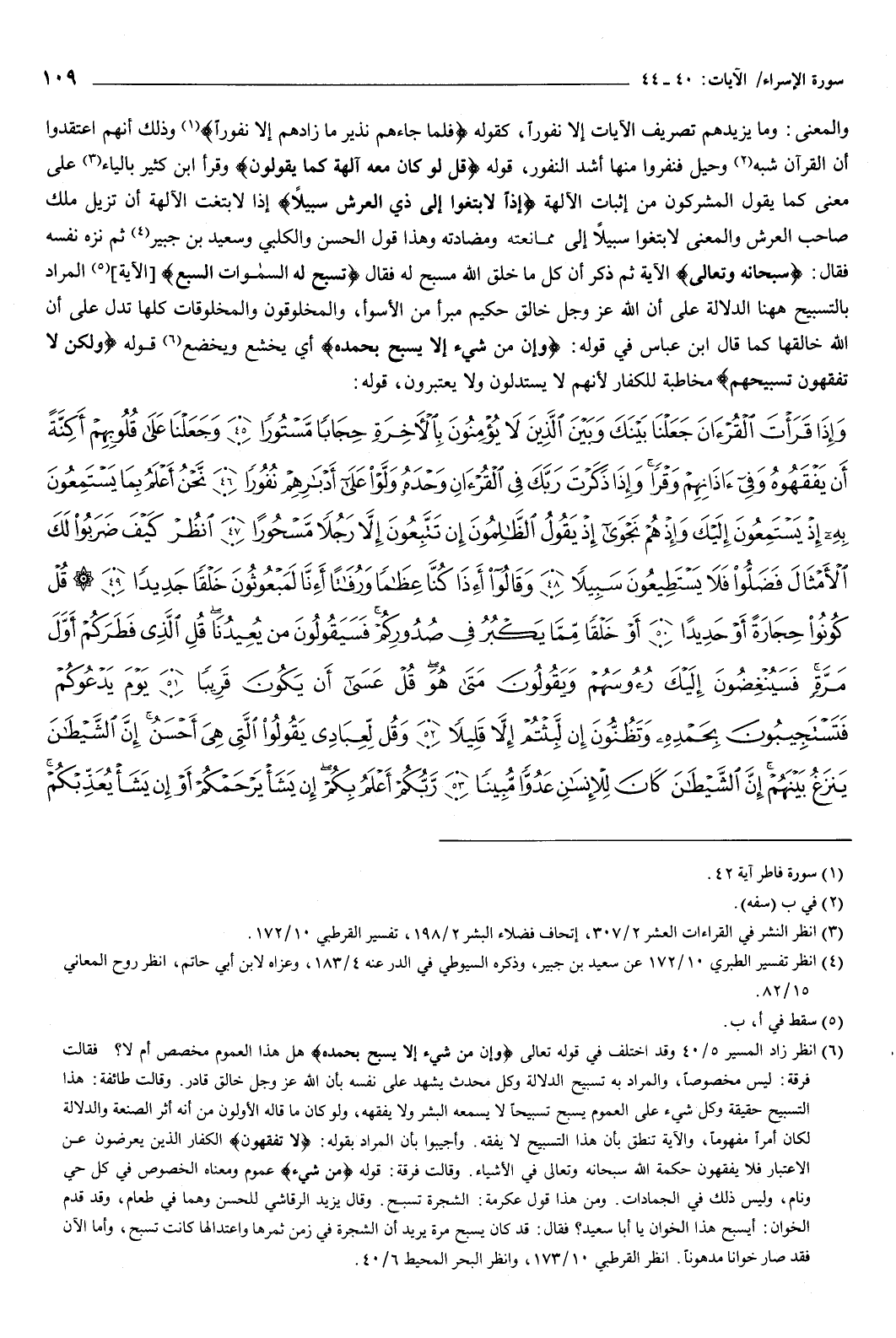 قوله: {وَإِذَا قَرَأْتَ الْقُرْءَانَ جَعَلْنَا بَيْنَكَ وَبَيْنَ الَّذِينَ لا يُؤْمِنُونَ بِالآخِرَةِ حِجَابًا مَسْتُورًا {45} وَجَعَلْنَا عَلَى قُلُوبِهِمْ أَكِنَّةً أَنْ يَفْقَهُوهُ وَفِي آذَانِهِمْ وَقْرًا وَإِذَا ذَكَرْتَ رَبَّكَ فِي الْقُرْءَانِ وَحْدَهُ وَلَّوْا عَلَى أَدْبَارِهِمْ نُفُورًا {46} نَحْنُ أَعْلَمُ بِمَا يَسْتَمِعُونَ بِهِ إِذْ يَسْتَمِعُونَ إِلَيْكَ وَإِذْ هُمْ نَجْوَى إِذْ يَقُولُ الظَّالِمُونَ إِنْ تَتَّبِعُونَ إِلا رَجُلا مَسْحُورًا {47} انْظُرْ كَيْفَ ضَرَبُوا لَكَ الأَمْثَالَ فَضَلُّوا فَلا يَسْتَطِيعْونَ سَبِيلا {48} وَقَالُوا أَئِذَا كُنَّا عِظَامًا وَرُفَاتًا أَإِنَّا لَمَبْعُوثُونَ خَلْقًا جَدِيدًا {49} قُلْ كُونُوا حِجَارَةً أَوْ حَدِيدًا {50} أَوْ خَلْقًا مِمَّا يَكْبُرُ فِي صُدُورِكُمْ فَسَيَقُولُونَ مَنْ يُعِيدُنَا قُلِ الَّذِي فَطَرَكُمْ أَوَّلَ مَرَّةٍ فَسَيُنْغِضُونَ إِلَيْكَ رُءُوسَهُمْ وَيَقُولُونَ مَتَى هُوَ قُلْ عَسَى أَنْ يَكُونَ قَرِيبًا {51} يَوْمَ يَدْعُوكُمْ فَتَسْتَجِيبُونَ بِحَمْدِهِ وَتَظُنُّونَ إِنْ لَبِثْتُمْ إِلا قَلِيلا {52} وَقُلْ لِعِبَادِي يَقُولُوا الَّتِي هِيَ أَحْسَنُ إِنَّ الشَّيْطَانَ يَنْزَغُ بَيْنَهُمْ إِنَّ الشَّيْطَانَ كَانَ لِلإِنْسَانِ عَدُوًّا مُبِينًا {53} رَبُّكُمْ أَعْلَمُ بِكُمْ إِنْ يَشَأْ يَرْحَمْكُمْ أَوْ إِنْ يَشَأْ يُعَذِّبْكُمْ