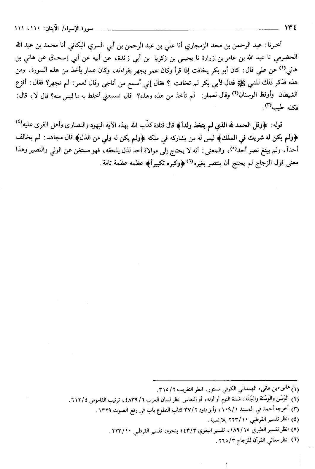 قوله: {وَقُلِ الْحَمْدُ لِلَّهِ الَّذِي لَمْ يَتَّخِذْ وَلَدًا} [الإسراء: 111] قال قتادة: كذب الله بهذه الآية اليهود والنصارى وأهل القرى عليه.