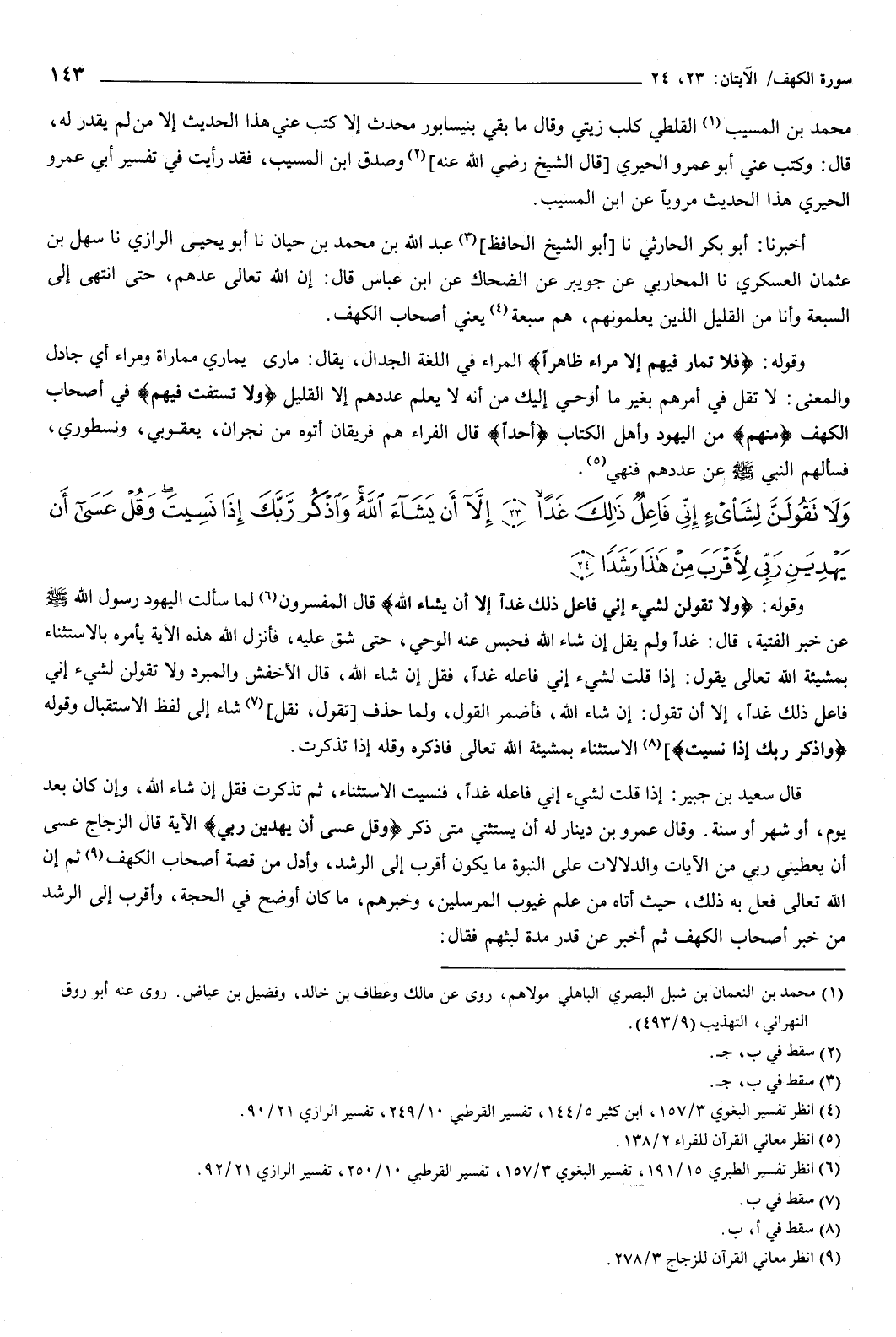 {وَلا تَقُولَنَّ لِشَيْءٍ إِنِّي فَاعِلٌ ذَلِكَ غَدًا {23} إِلا أَنْ يَشَاءَ اللَّهُ وَاذْكُرْ رَبَّكَ إِذَا نَسِيتَ وَقُلْ عَسَى أَنْ يَهْدِيَنِ رَبِّي لأَقْرَبَ مِنْ هَذَا رَشَدًا {24} } [الكهف: 23-24] وقوله: {وَلا تَقُولَنَّ لِشَيْءٍ إِنِّي فَاعِلٌ ذَلِكَ غَدًا {23} إِلا أَنْ يَشَاءَ اللَّهُ} [الكهف: 23-24] قال المفسرون: لما سألت اليهود رسول الله صَلَّى اللهُ عَلَيْهِ وَسَلَّمَ عن خبر الفتية، قال: غدا.