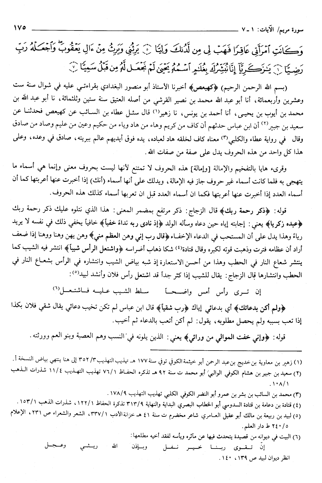 وَكَانَتِ امْرَأَتِي عَاقِرًا فَهَبْ لِي مِنْ لَدُنْكَ وَلِيًّا {5} يَرِثُنِي وَيَرِثُ مِنْ آلِ يَعْقُوبَ وَاجْعَلْهُ رَبِّ رَضِيًّا {6} يَا زَكَرِيَّا إِنَّا نُبَشِّرُكَ بِغُلامٍ اسْمُهُ يَحْيَى لَمْ نَجْعَلْ لَهُ مِنْ قَبْلُ سَمِيًّا {7} } [مريم: 1-7] بسم الله الرحمن الرحيم كهيعص