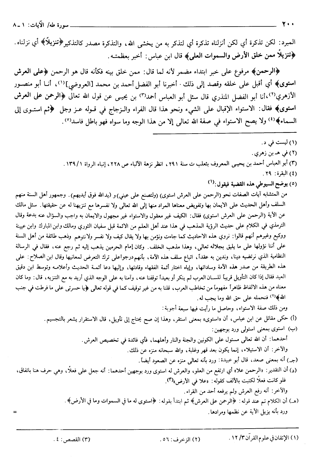 أخبرنا أبو الفضل أحمد بن محمد العروضي، أنا أبو منصور الأزهري، أنا أبو الفضل المنذري، قال: سئل أبو العباس أحمد بن يحيى عن قول الله تعالى: {الرَّحْمَنُ عَلَى الْعَرْشِ اسْتَوَى} [طه: 5] فقال: الاستواء الإقبال على الشيء.