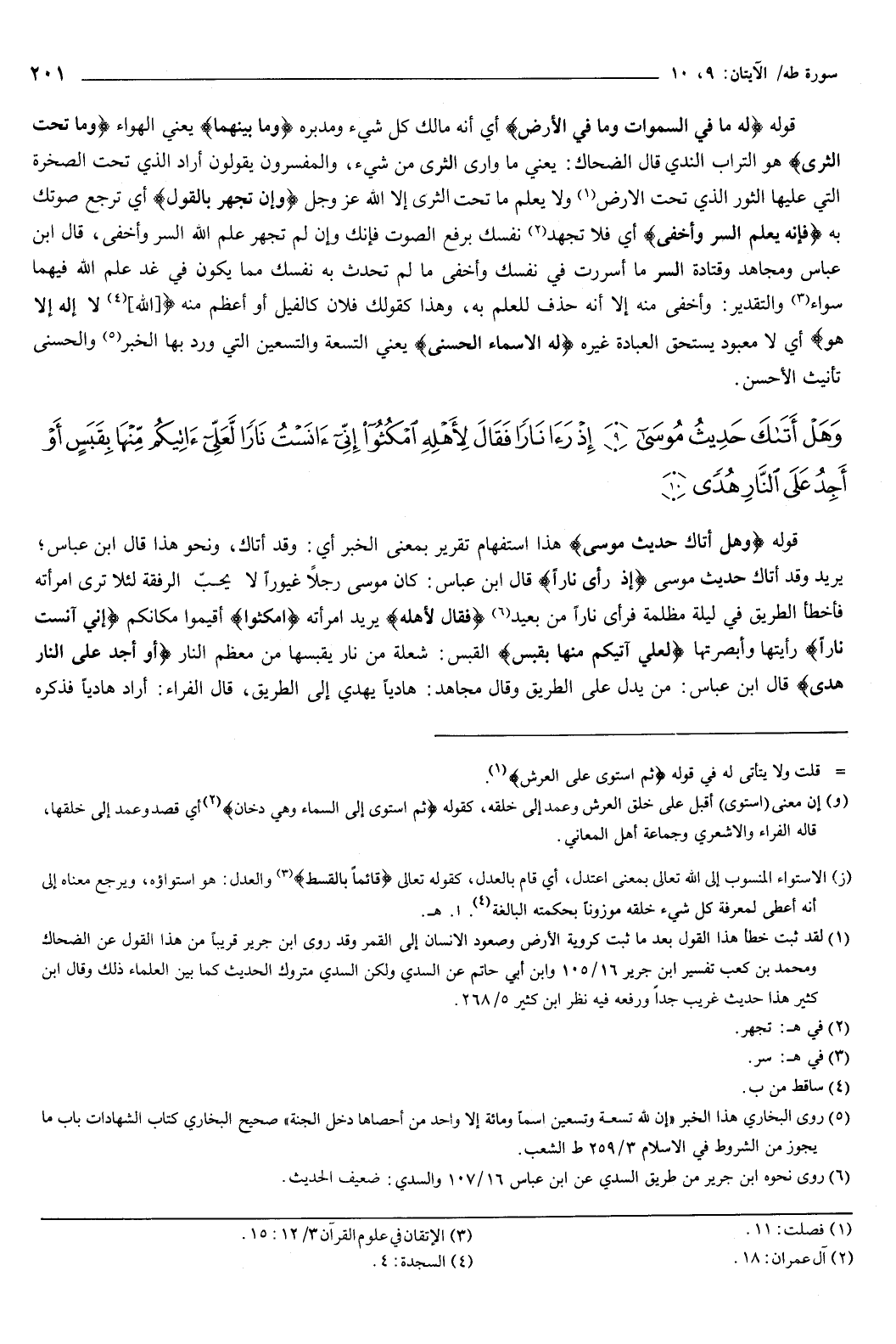 {وَهَلْ أَتَاكَ حَدِيثُ مُوسَى {9} إِذْ رَأَى نَارًا فَقَالَ لأَهْلِهِ امْكُثُوا إِنِّي آنَسْتُ نَارًا لَعَلِّي آتِيكُمْ مِنْهَا بِقَبَسٍ أَوْ أَجِدُ عَلَى النَّارِ هُدًى {10} } [طه: 9-10] قوله: {وَهَلْ أَتَاكَ حَدِيثُ مُوسَى} [طه: 9] هذا استفهام تقرير بمعنى الخبر، أي: وقد أتاك، ونحو هذا قال ابن عباس: يريد وقد أتاك حديث موسى.