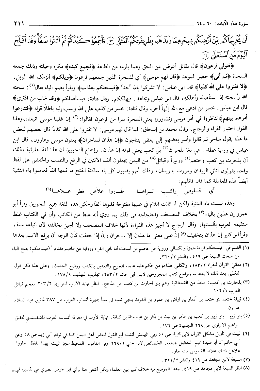 ثم قالوا وأسر بعضهم إلى بعض يتناجون: {إِنْ هَذَانِ لَسَاحِرَانِ} [طه: 63] يعنون موسى وهارون، قال ابن عباس فِي رواية عطاء: هي لغة بلحرث بن كعب، يعني قوله: {إِنْ هَذَانِ} [طه: 63] .