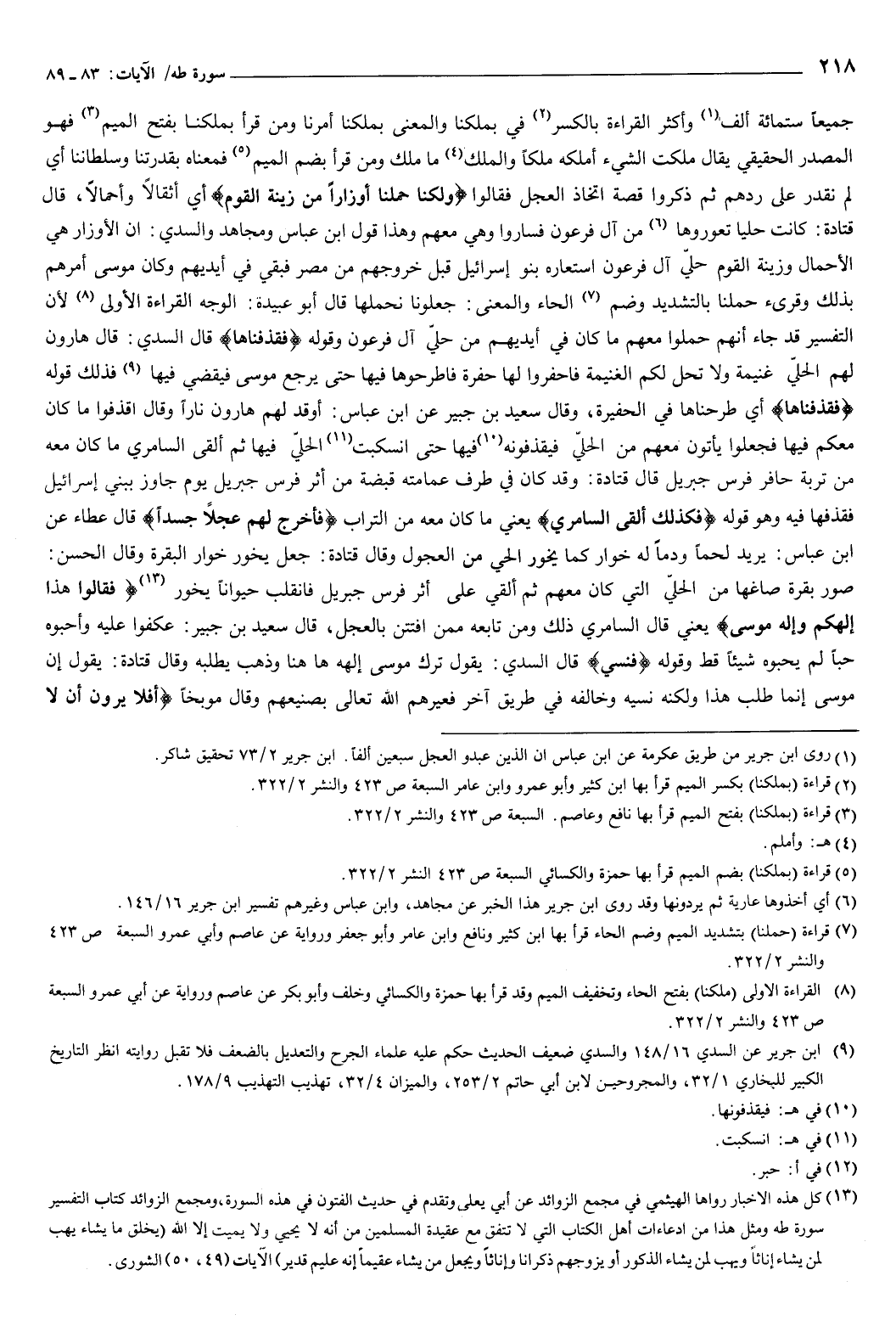 وقرئ {حُمِّلْنَا} [طه: 87] بالتشديد وضم الحاء، والمعنى: جعلونا نحملها، قال أبو عبيدة: الوجه القراءة الأولى، لأن التفسير قد جاء أنهم حملوا معهم ما كان فِي أيديهم من حلي آل فرعون.