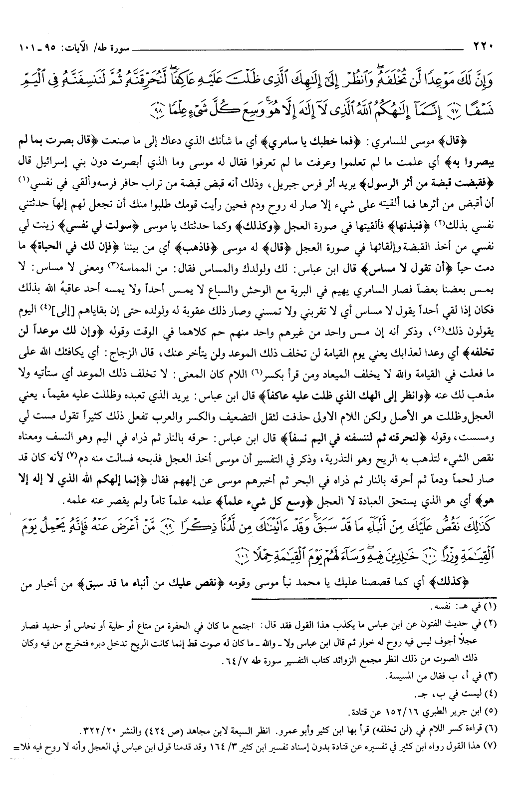 وَإِنَّ لَكَ مَوْعِدًا لَنْ تُخْلَفَهُ وَانْظُرْ إِلَى إِلَهِكَ الَّذِي ظَلْتَ عَلَيْهِ عَاكِفًا لَنُحَرِّقَنَّهُ ثُمَّ لَنَنْسِفَنَّهُ فِي الْيَمِّ نَسْفًا {97} إِنَّمَا إِلَهُكُمُ اللَّهُ الَّذِي لا إِلَهَ إِلا هُوَ وَسِعَ كُلَّ شَيْءٍ عِلْمًا {98} } [طه: 95-98] قال موسى للسامري: {فَمَا خَطْبُكَ يَا سَامِرِيُّ} [طه: 95] أي: ما شأنك الذي دعاك إلى ما صنعت.