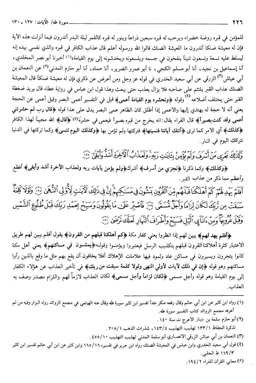 {وَكَذَلِكَ نَجْزِي مَنْ أَسْرَفَ وَلَمْ يُؤْمِنْ بِآيَاتِ رَبِّهِ وَلَعَذَابُ الآخِرَةِ أَشَدُّ وَأَبْقَى} [طه: 127] وكذلك وكما ذكرنا، {نَجْزِي مَنْ أَسْرَفَ} [طه: 127] أشرك، {وَلَمْ يُؤْمِنْ بِآيَاتِ رَبِّهِ وَلَعَذَابُ الآخِرَةِ أَشَدُّ وَأَبْقَى} [طه: 127] أفظع وأعظم مما ذكر من عذاب القبر.