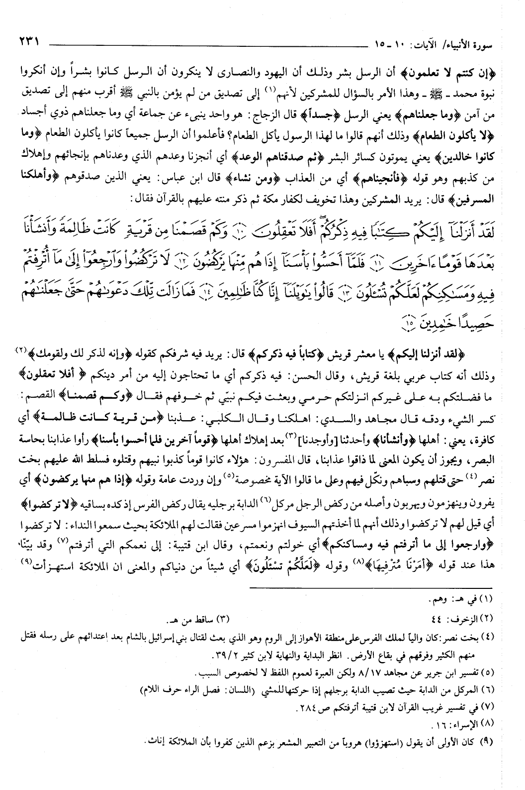 {إِنْ كُنْتُمْ لا تَعْلَمُونَ} [الأنبياء: 7] أن الرسل بشر، وذلك أن اليهود والنصارى لا ينكرون أن الرسل كانوا بشرا، وإن أنكروا نبوة محمد صَلَّى اللهُ عَلَيْهِ وَسَلَّمَ، وهذا الأمر بالسؤال للمشركين لأنهم إلى تصديق من لم يؤمن بالنبي صَلَّى اللهُ عَلَيْهِ وَسَلَّمَ أقرب منهم إلى تصديق من آمن.