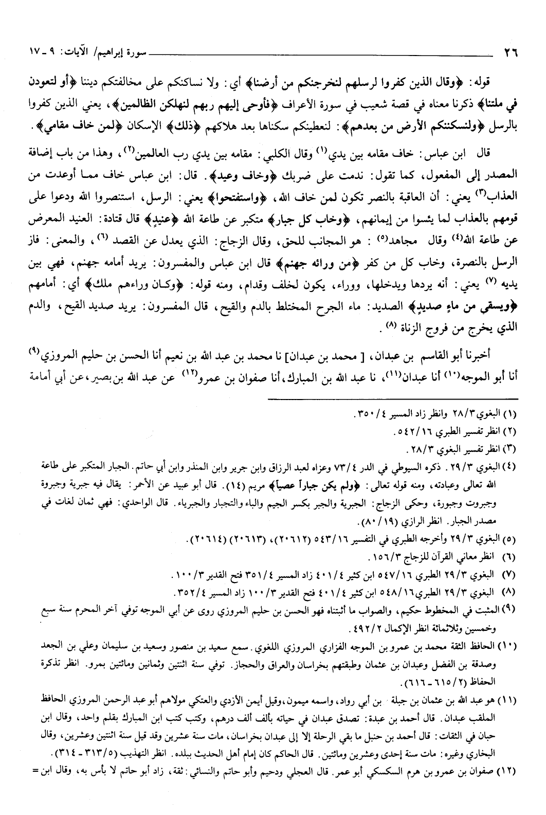 واستفتحوا يعني: الرسل، استنصروا الله ودعوا على قومهم بالعذاب لما يئسوا من إيمانهم، {وَخَابَ كُلُّ جَبَّارٍ} [إبراهيم: 15] متكبر عن طاعة الله، عنيد قال قتادة: العنيد المعرض عن طاعة الله.