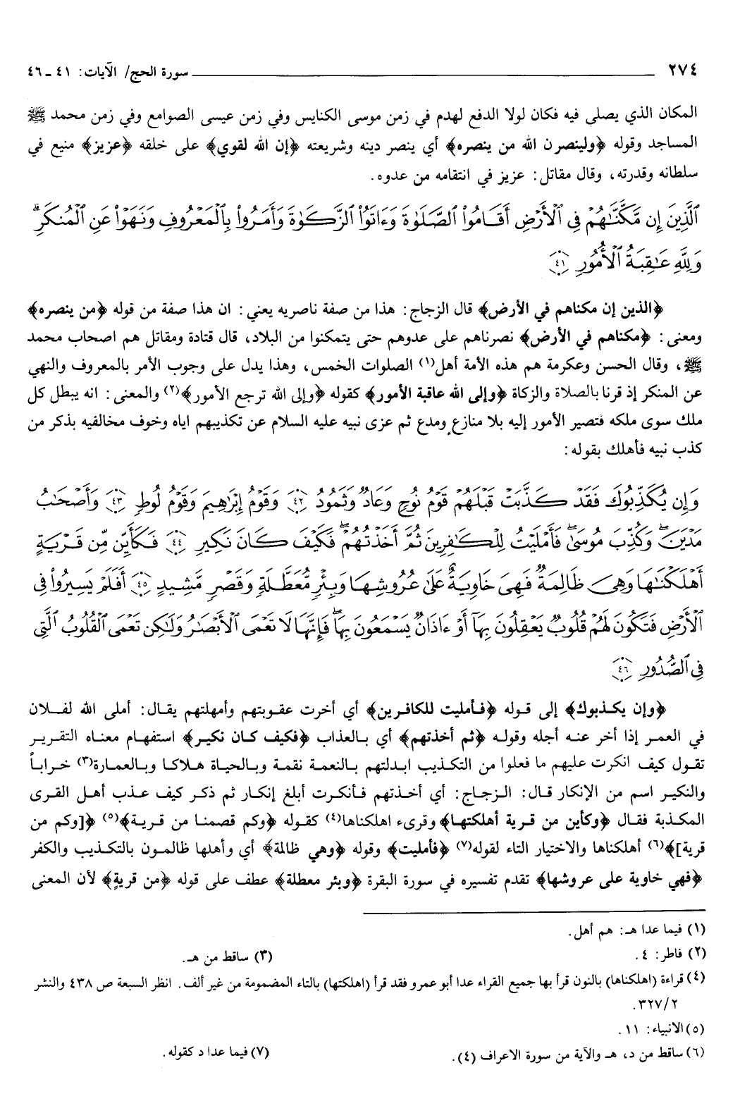 {الَّذِينَ إِنْ مَكَّنَّاهُمْ فِي الأَرْضِ أَقَامُوا الصَّلاةَ وَآتَوُا الزَّكَاةَ وَأَمَرُوا بِالْمَعْرُوفِ وَنَهَوْا عَنِ الْمُنْكَرِ وَلِلَّهِ عَاقِبَةُ الأُمُورِ} [الحج: 41] {الَّذِينَ إِنْ مَكَّنَّاهُمْ فِي الأَرْضِ} [الحج: 41] قال الزجاج: هذا من صفة ناصريه.