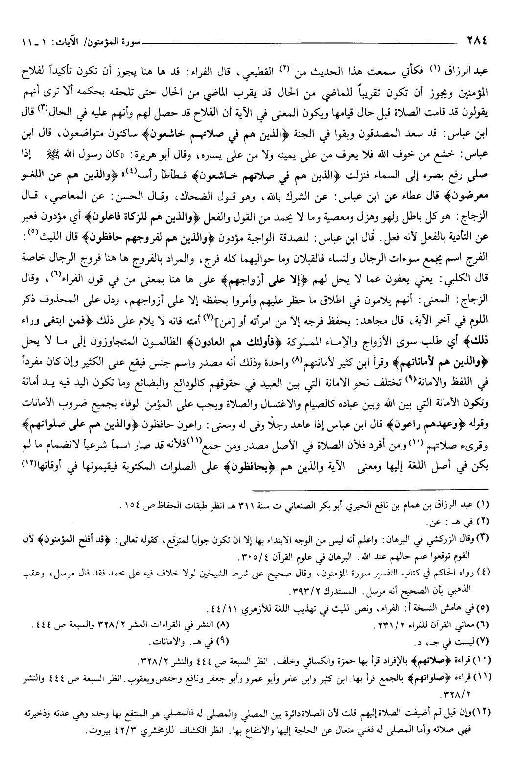 {وَالَّذِينَ هُمْ عَلَى صَلَوَاتِهِمْ} [المؤمنون: 9] وقرئ صلاتهم ومن أفراد فلأن الصلاة في الأصل مصدر، ومن جمع فلأنه قد صار اسما شرعيا لانضمام ما لم يكن في أصل اللغة إليها، ومعنى الآية: والذين هم يحافظون على الصلوات المكتوبة، فيقيمونها في أوقاتها.