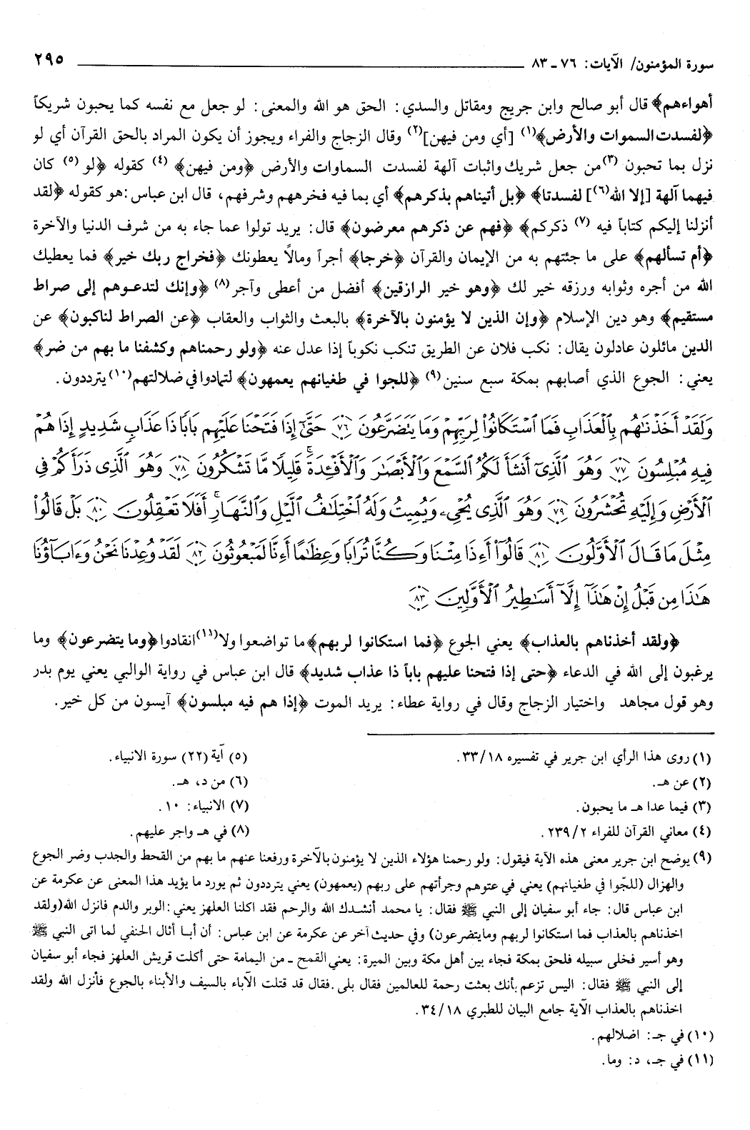 {وَلَوْ رَحِمْنَاهُمْ وَكَشَفْنَا مَا بِهِمْ مِنْ ضُرٍّ} [المؤمنون: 75] يعني: الجوع الذي أصابهم بمكة سبع سنين، {لَلَجُّوا فِي طُغْيَانِهِمْ يَعْمَهُونَ} [المؤمنون: 75] لتمادوا في ضلالتهم يترددون.