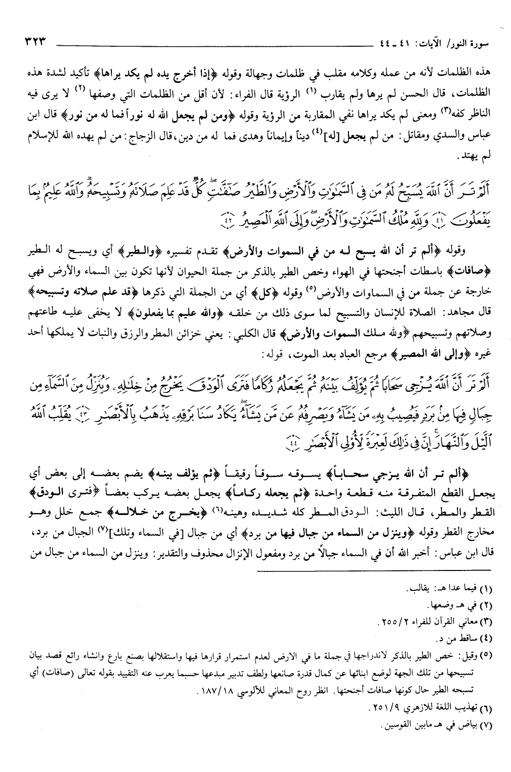 {أَلَمْ تَرَ أَنَّ اللَّهَ يُسَبِّحُ لَهُ مَنْ فِي السَّمَوَاتِ وَالأَرْضِ وَالطَّيْرُ صَافَّاتٍ كُلٌّ قَدْ عَلِمَ صَلاتَهُ وَتَسْبِيحَهُ وَاللَّهُ عَلِيمٌ بِمَا يَفْعَلُونَ {41} وَلِلَّهِ مُلْكُ السَّمَوَاتِ وَالأَرْضِ وَإِلَى اللَّهِ الْمَصِيرُ {42} } [النور: 41-42] وقوله: {أَلَمْ تَرَ أَنَّ اللَّهَ يُسَبِّحُ لَهُ مَنْ فِي السَّمَوَاتِ وَالأَرْضِ} [النور: 41] تقدم تفسيره، {وَالطَّيْرُ} [النور: 41] أي: ويسبح له الطير، {صَافَّاتٍ} [النور: 41] باسطات أجنحتها في الهواء، وخص الطير بالذكر من جملة الحيوان لأنها تكون بين السماء والأرض، فهي خارجة عن جملة من في السموات والأرض.