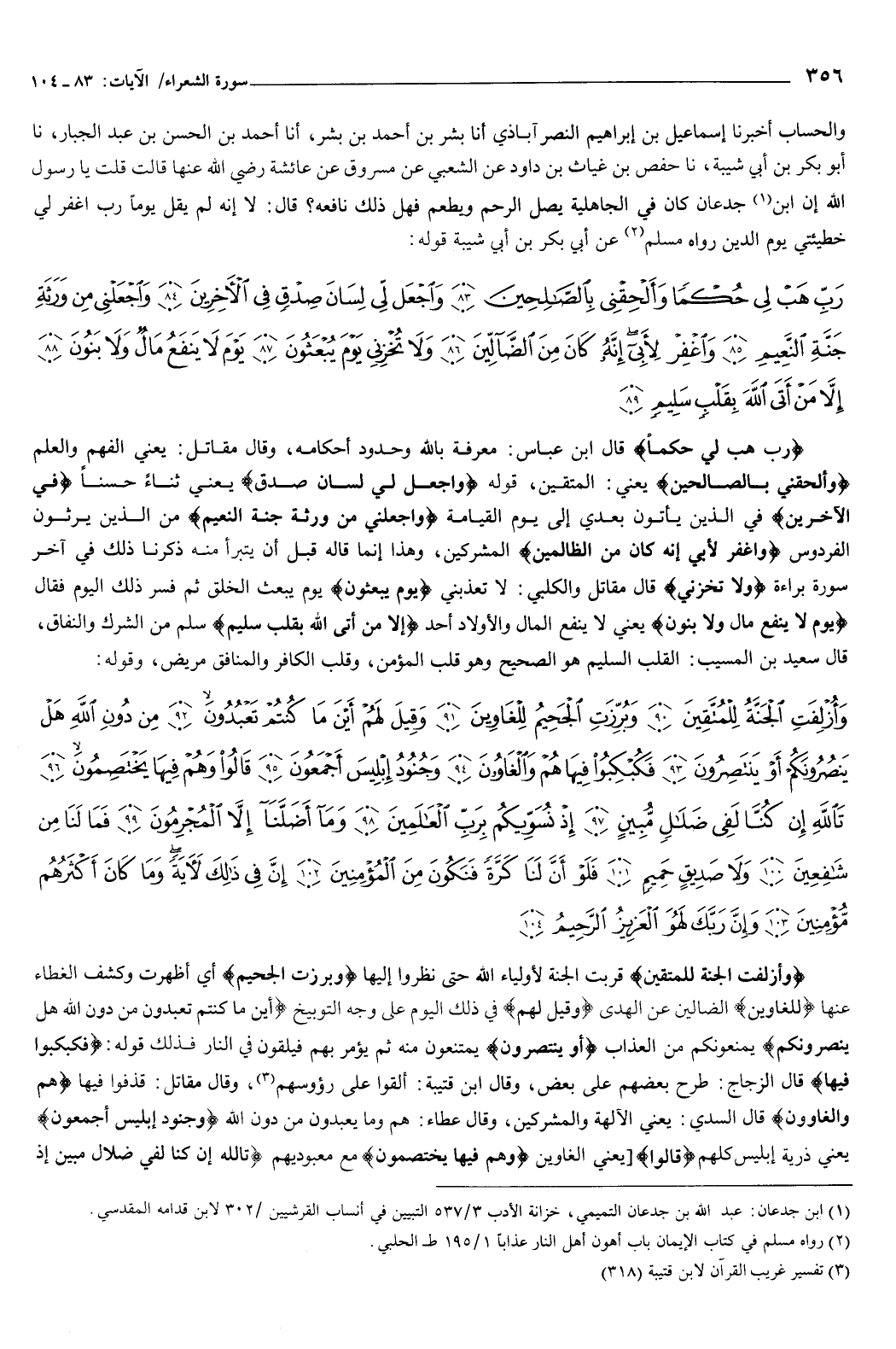 قوله: {رَبِّ هَبْ لِي حُكْمًا وَأَلْحِقْنِي بِالصَّالِحِينَ {83} وَاجْعَلْ لِي لِسَانَ صِدْقٍ فِي الآخِرِينَ {84} وَاجْعَلْنِي مِنْ وَرَثَةِ جَنَّةِ النَّعِيمِ {85} وَاغْفِرْ لأَبِي إِنَّهُ كَانَ مِنَ الضَّالِّينَ {86} وَلا تُخْزِنِي يَوْمَ يُبْعَثُونَ {87} يَوْمَ لا يَنْفَعُ مَالٌ وَلا بَنُونَ {88} إِلا مَنْ أَتَى اللَّهَ بِقَلْبٍ سَلِيمٍ {89} } [الشعراء: 83-89] {رَبِّ هَبْ لِي حُكْمًا} [الشعراء: 83] قال ابن عباس: معرفة بالله وحدود أحكامه.