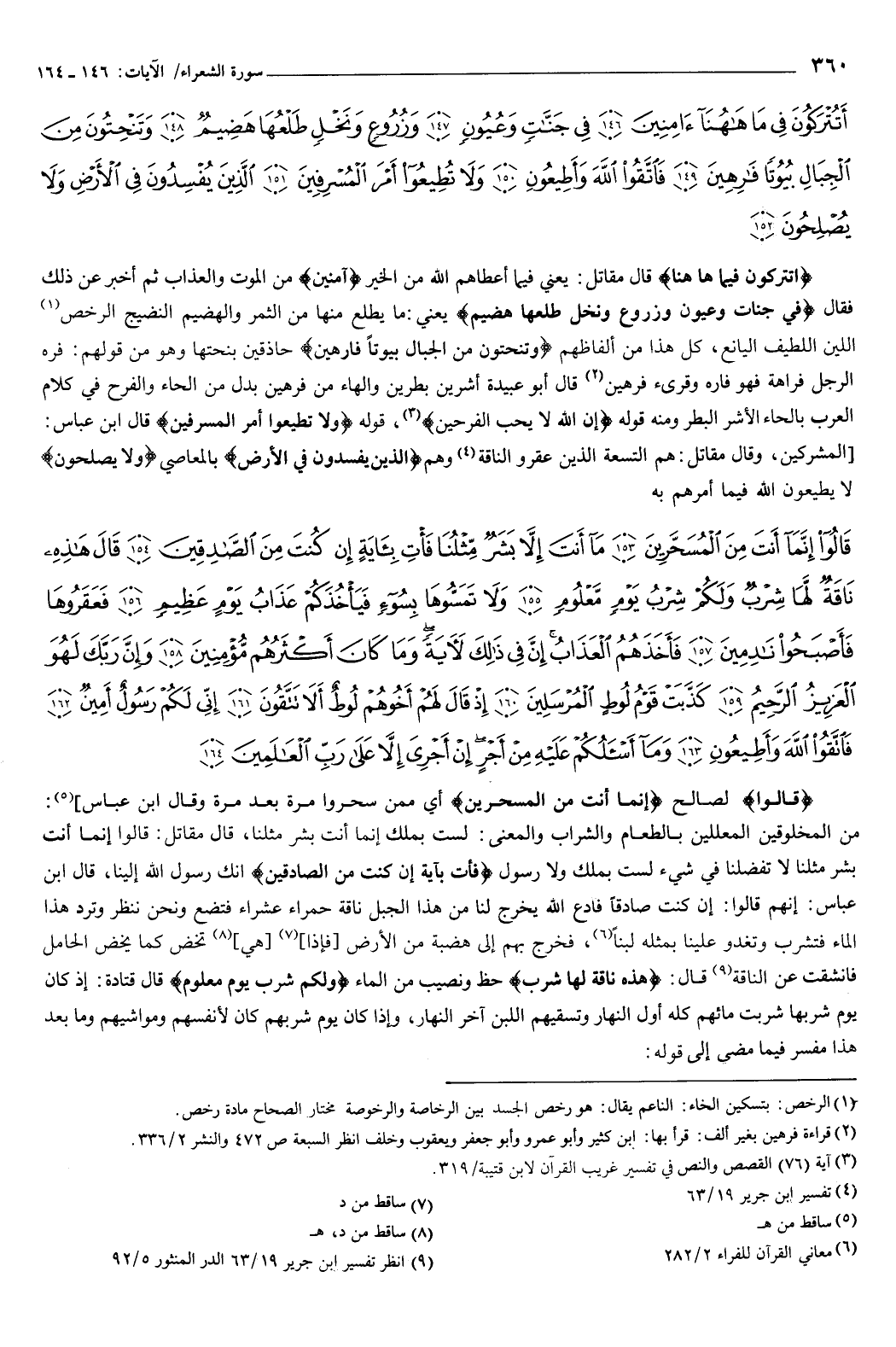 {قَالُوا إِنَّمَا أَنْتَ مِنَ الْمُسَحَّرِينَ {153} مَا أَنْتَ إِلا بَشَرٌ مِثْلُنَا فَأْتِ بِآيَةٍ إِنْ كُنْتَ مِنَ الصَّادِقِينَ {154} قَالَ هَذِهِ نَاقَةٌ لَهَا شِرْبٌ وَلَكُمْ شِرْبُ يَوْمٍ مَعْلُومٍ {155} وَلا تَمَسُّوهَا بِسُوءٍ فَيَأْخُذَكُمْ عَذَابُ يَوْمٍ عَظِيمٍ {156} فَعَقَرُوهَا فَأَصْبَحُوا نَادِمِينَ {157} فَأَخَذَهُمُ الْعَذَابُ إِنَّ فِي ذَلِكَ لآيَةً وَمَا كَانَ أَكْثَرُهُمْ مُؤْمِنِينَ {158} وَإِنَّ رَبَّكَ لَهُوَ الْعَزِيزُ الرَّحِيمُ {159} كَذَّبَتْ قَوْمُ لُوطٍ الْمُرْسَلِينَ {160} إِذْ قَالَ لَهُمْ أَخُوهُمْ لُوطٌ أَلا تَتَّقُونَ {161} إِنِّي لَكُمْ رَسُولٌ أَمِينٌ {162} فَاتَّقُوا اللَّهَ وَأَطِيعُونِ {163} وَمَا أَسْأَلُكُمْ عَلَيْهِ مِنْ أَجْرٍ إِنْ أَجْرِيَ إِلا عَلَى رَبِّ الْعَالَمِينَ {164} } [الشعراء: 153-164] قالوا لصالح: {إِنَّمَا أَنْتَ مِنَ الْمُسَحَّرِينَ} [الشعراء: 153] أي: ممن سحروا مرة بعد مرة.