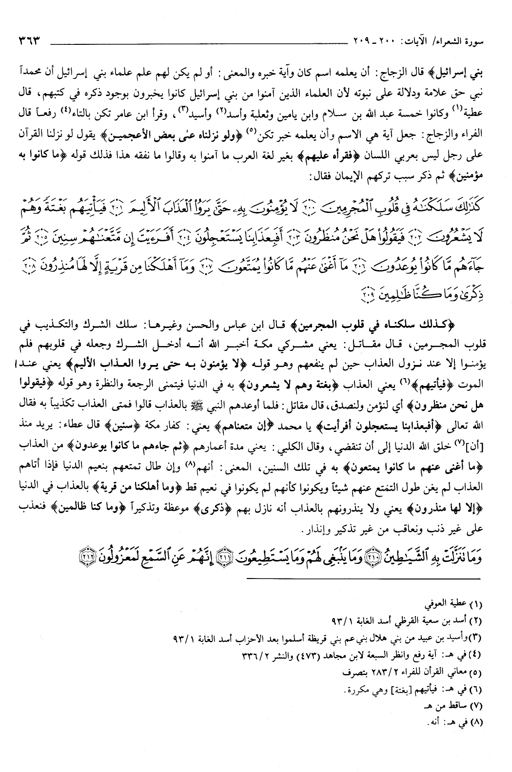 ثم ذكر سبب تركهم الإيمان، فقال: {كَذَلِكَ سَلَكْنَاهُ فِي قُلُوبِ الْمُجْرِمِينَ {200} لا يُؤْمِنُونَ بِهِ حَتَّى يَرَوُا الْعَذَابَ الأَلِيمَ {201} فَيَأْتِيَهُمْ بَغْتَةً وَهُمْ لا يَشْعُرُونَ {202} فَيَقُولُوا هَلْ نَحْنُ مُنْظَرُونَ {203} أَفَبِعَذَابِنَا يَسْتَعْجِلُونَ {204} أَفَرَأَيْتَ إِنْ مَتَّعْنَاهُمْ سِنِينَ {205} ثُمَّ جَاءَهُمْ مَا كَانُوا يُوعَدُونَ {206} مَا أَغْنَى عَنْهُمْ مَا كَانُوا يُمَتَّعُونَ {207} وَمَا أَهْلَكْنَا مِنْ قَرْيَةٍ إِلا لَهَا مُنْذِرُونَ {208} ذِكْرَى وَمَا كُنَّا ظَالِمِينَ {209} } [الشعراء: 200-209] {كَذَلِكَ سَلَكْنَاهُ فِي قُلُوبِ الْمُجْرِمِينَ} [الشعراء: 200] قال ابن عباس، والحسن، وغيرها: سلك الشرك والتكذيب في قلوب المجرمين.