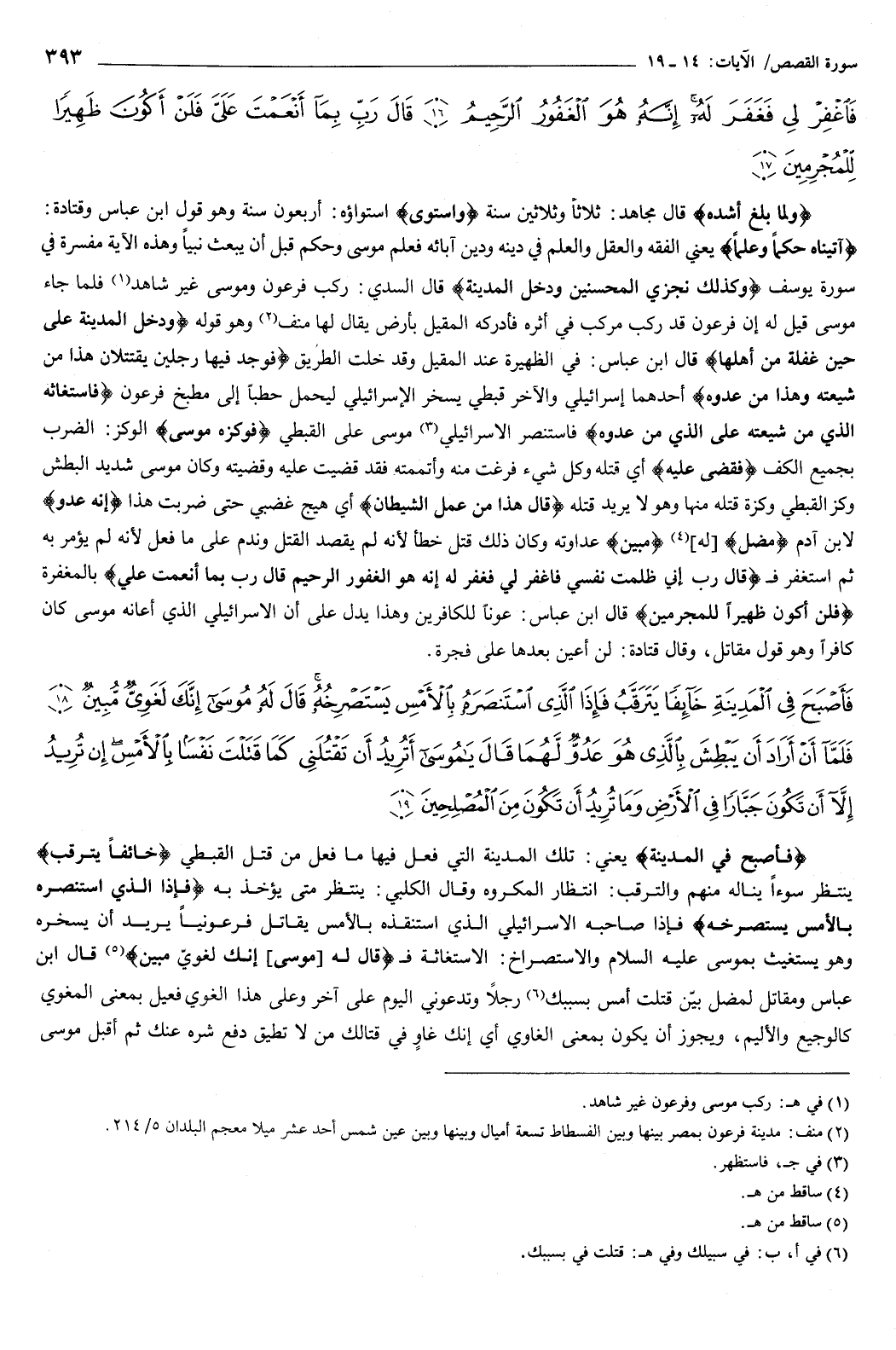 فَاغْفِرْ لِي فَغَفَرَ لَهُ إِنَّهُ هُوَ الْغَفُورُ الرَّحِيمُ {16} قَالَ رَبِّ بِمَا أَنْعَمْتَ عَلَيَّ فَلَنْ أَكُونَ ظَهِيرًا لِلْمُجْرِمِينَ {17} } [القصص: 14-17] {وَلَمَّا بَلَغَ أَشُدَّهُ} [القصص: 14] قال مجاهد: ثلاثا وثلاثين سنة.