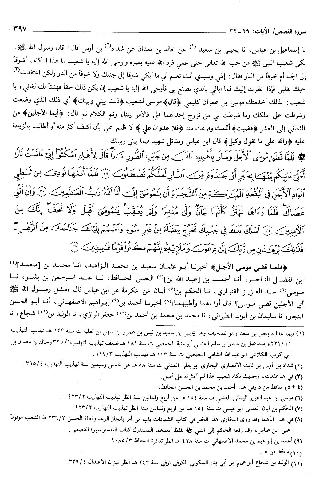 {فَلَمَّا قَضَى مُوسَى الأَجَلَ وَسَارَ بِأَهْلِهِ آنَسَ مِنْ جَانِبِ الطُّورِ نَارًا قَالَ لأَهْلِهِ امْكُثُوا إِنِّي آنَسْتُ نَارًا لَعَلِّي آتِيكُمْ مِنْهَا بِخَبَرٍ أَوْ جَذْوَةٍ مِنَ النَّارِ لَعَلَّكُمْ تَصْطَلُونَ {29} فَلَمَّا أَتَاهَا نُودِي مِنْ شَاطِئِ الْوَادِي الأَيْمَنِ فِي الْبُقْعَةِ الْمُبَارَكَةِ مِنَ الشَّجَرَةِ أَنْ يَا مُوسَى إِنِّي أَنَا اللَّهُ رَبُّ الْعَالَمِينَ {30} وَأَنْ أَلْقِ عَصَاكَ فَلَمَّا رَآهَا تَهْتَزُّ كَأَنَّهَا جَانٌّ وَلَّى مُدْبِرًا وَلَمْ يُعَقِّبْ يَا مُوسَى أَقْبِلْ وَلا تَخَفْ إِنَّكَ مِنَ الآمِنْينَ {31} اسْلُكْ يَدَكَ فِي جَيْبِكَ تَخْرُجْ بَيْضَاءَ مِنْ غَيْرِ سُوءٍ وَاضْمُمْ إِلَيْكَ جَنَاحَكَ مِنَ الرَّهْبِ فَذَانِكَ بُرْهَانَانِ مِنْ رَبِّكَ إِلَى فِرْعَوْنَ وَمَلَئِهِ إِنَّهُمْ كَانُوا قَوْمًا فَاسِقِينَ {32} } [القصص: 29-32] {فَلَمَّا قَضَى مُوسَى الأَجَلَ} [القصص: 29]