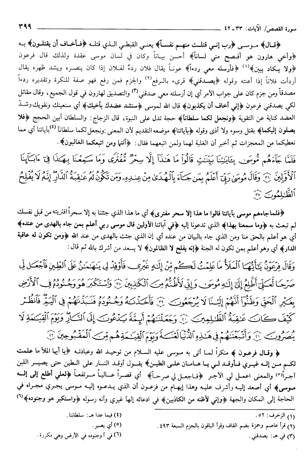 {فَلَمَّا جَاءَهُمْ مُوسَى بِآيَاتِنَا بَيِّنَاتٍ قَالُوا مَا هَذَا إِلا سِحْرٌ مُفْتَرًى وَمَا سَمِعْنَا بِهَذَا فِي آبَائِنَا الأَوَّلِينَ {36} وَقَالَ مُوسَى رَبِّي أَعْلَمُ بِمَنْ جَاءَ بِالْهُدَى مِنْ عِنْدِهِ وَمَنْ تَكُونُ لَهُ عَاقِبَةُ الدَّارِ إِنَّهُ لا يُفْلِحُ الظَّالِمُونَ {37} } [القصص: 36-37] {فَلَمَّا جَاءَهُمْ مُوسَى بِآيَاتِنَا بَيِّنَاتٍ قَالُوا مَا هَذَا إِلا سِحْرٌ مُفْتَرًى} [القصص: 36] أي: ما هذا الذي جئتنا به إلا سحر افتريته من قبل نفسك لم تبعث به، {وَمَا سَمِعْنَا بِهَذَا} [القصص: 36] الذي تدعونا إليه، {فِي آبَائِنَا الأَوَّلِينَ {36} وَقَالَ مُوسَى رَبِّي أَعْلَمُ بِمَنْ جَاءَ بِالْهُدَى مِنْ عِنْدِهِ} [القصص: 36-37] أي: هو أعلم بالحق منا، ومن الذي جاء بالبيان من عنده، أي: إن الذي جئت بالهدي من عند الله، {وَمَنْ تَكُونُ لَهُ عَاقِبَةُ الدَّارِ} [القصص: 37] أي: وهو أعلم بمن تكون له الجنة، {إِنَّهُ لا يُفْلِحُ الظَّالِمُونَ} [القصص: 37] لا يسعد من أشرك بالله.