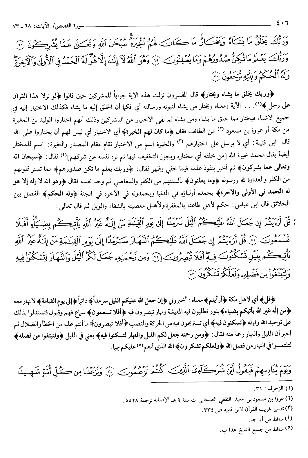 وَرَبُّكَ يَخْلُقُ مَا يَشَاءُ وَيَخْتَارُ مَا كَانَ لَهُمُ الْخِيَرَةُ سُبْحَانَ اللَّهِ وَتَعَالَى عَمَّا يُشْرِكُونَ {68} وَرَبُّكَ يَعْلَمُ مَا تُكِنُّ صُدُورُهُمْ وَمَا يُعْلِنُونَ {69} وَهُوَ اللَّهُ لا إِلَهَ إِلا هُوَ لَهُ الْحَمْدُ فِي الأُولَى وَالآخِرَةِ وَلَهُ الْحُكْمُ وَإِلَيْهِ تُرْجَعُونَ {70} { [القصص: 68-70] } وَرَبُّكَ يَخْلُقُ مَا يَشَاءُ وَيَخْتَارُ { [القصص: 68] قال المفسرون: نزلت هذه الآية جوابا للمشركين حين قالوا:} لو نزلا هذا القرءان على رجل {الآية، ومعناه: ويختار من يشاء لنبوته ورسالته، أي: فكما أن الخلق إليه ما يشاء، فكذلك الاختيار إليه في جميع الأشياء، فيختار مما خلق ومن يشاء، ثم نفى الاختيار عن المشركين، وذلك أنهم اختاروا الوليد بن المغيرة من مكة، أو عروة بن مسعود من الطائف، فقال:} مَا كَانَ لَهُمُ الْخِيَرَةُ { [القصص: 68] أي الاختيار، أي: ليس لهم أن يختاروا على الله، قال ابن قتيبة: أي لا يرسل على اختيارهم.