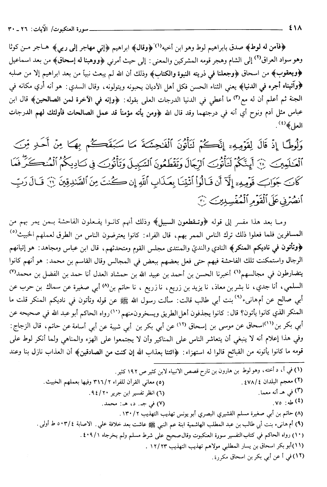 فَآمَنَ لَهُ لُوطٌ} [العنكبوت: 26] صدق بإبراهيم لوط، وهو ابن أخيه، وقال إبراهيم: {إِنِّي مُهَاجِرٌ إِلَى رَبِّي} [العنكبوت: 26] هاجر من كوثا، وهو سواد العراق، إلى الشام، وهجر قومه المشركين.