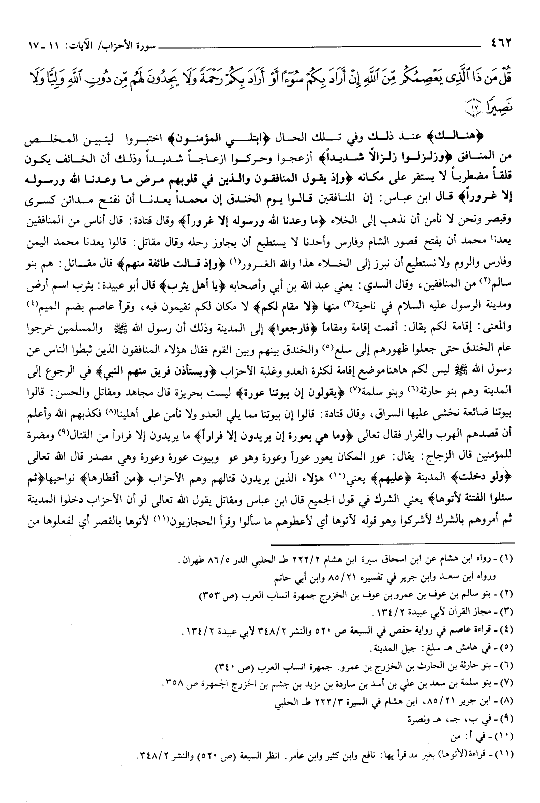قُلْ مَنْ ذَا الَّذِي يَعْصِمُكُمْ مِنَ اللَّهِ إِنْ أَرَادَ بِكُمْ سُوءًا أَوْ أَرَادَ بِكُمْ رَحْمَةً وَلا يَجِدُونَ لَهُمْ مِنْ دُونِ اللَّهِ وَلِيًّا وَلا نَصِيرًا {17} } [الأحزاب: 11-17] هنالك عند ذلك وفي تلك الحال، ابتلي المؤمنون اختبروا ليتبين المخلص من المنافق، {وَزُلْزِلُوا زِلْزَالا شَدِيدًا} [الأحزاب: 11] أزعجوا وحركوا إزعاجا شديدا، وذلك أن الخائف يكون قلقا مضطربا لا يستقر على مكانه.