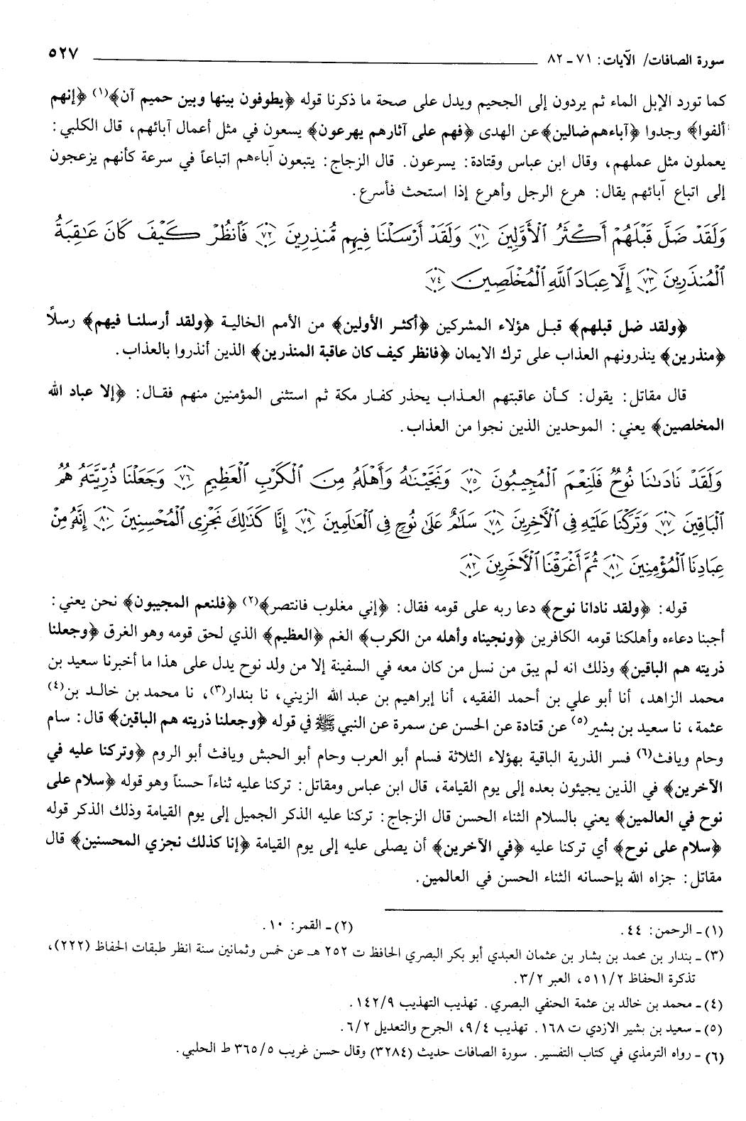 {وَلَقَدْ ضَلَّ قَبْلَهُمْ أَكْثَرُ الأَوَّلِينَ {71} وَلَقَدْ أَرْسَلْنَا فِيهِمْ مُنْذِرِينَ {72} فَانْظُرْ كَيْفَ كَانَ عَاقِبَةُ الْمُنذَرِينَ {73} إِلا عِبَادَ اللَّهِ الْمُخْلَصِينَ {74} } [الصافات: 71-74] {وَلَقَدْ ضَلَّ قَبْلَهُمْ} [الصافات: 71] قبل هؤلاء المشركين، أكثر الأولين من الأمم الخالية.