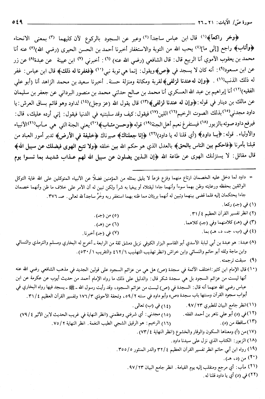 قوله: يا داود أي: قلنا له يا داود إنا جعلناك صيرناك، {خَلِيفَةً فِي الأَرْضِ} [ص: 26] تدبر أمور العباد من قبلنا بأمرنا، {فَاحْكُمْ بَيْنَ النَّاسِ بِالْحَقِّ} [ص: 26] بالعدل الذي هو حكم الله بين خلقه، {وَلا تَتَّبِعِ الْهَوَى فَيُضِلَّكَ عَنْ سَبِيلِ اللَّهِ} [ص: 26] قال مقاتل: لا يستزلنك الهوى عن طاعة الله.