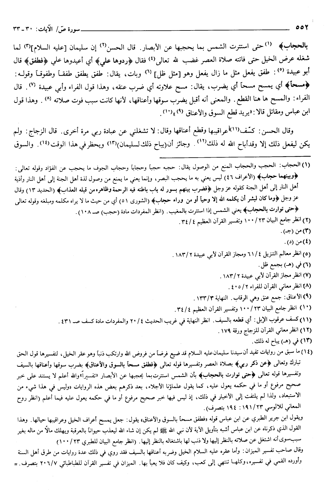 وقال الحسن: كسّف عراقيبها، وقطع أعناقها، وقال: لا تشغلني عن عبادة ربي مرة أخرى.