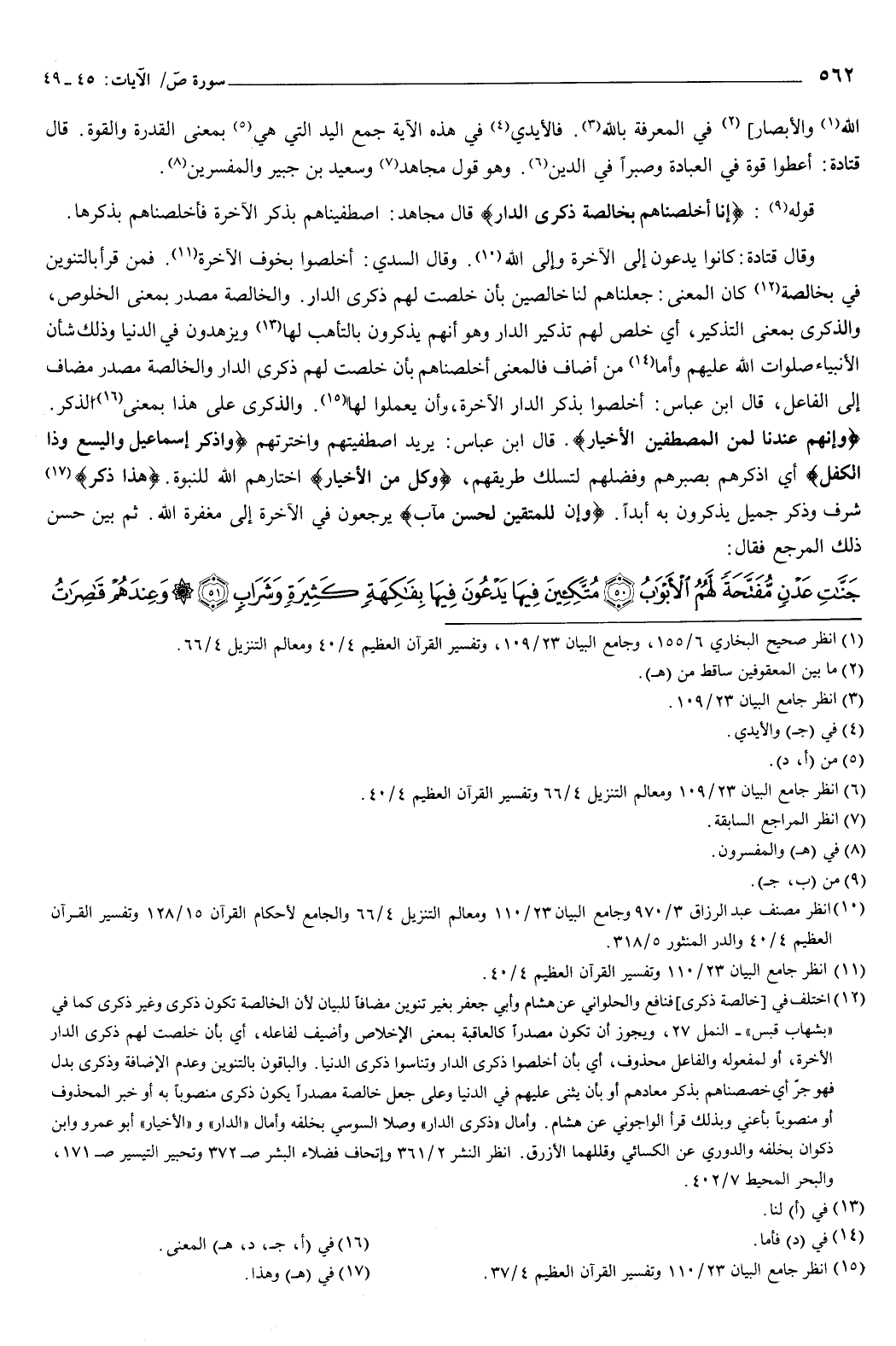 قوله: {إِنَّا أَخْلَصْنَاهُمْ بِخَالِصَةٍ ذِكْرَى الدَّارِ} [ص: 46] قال مجاهد: اصطفيناهم بذكر الآخرة فأخلصناهم بذكرها.