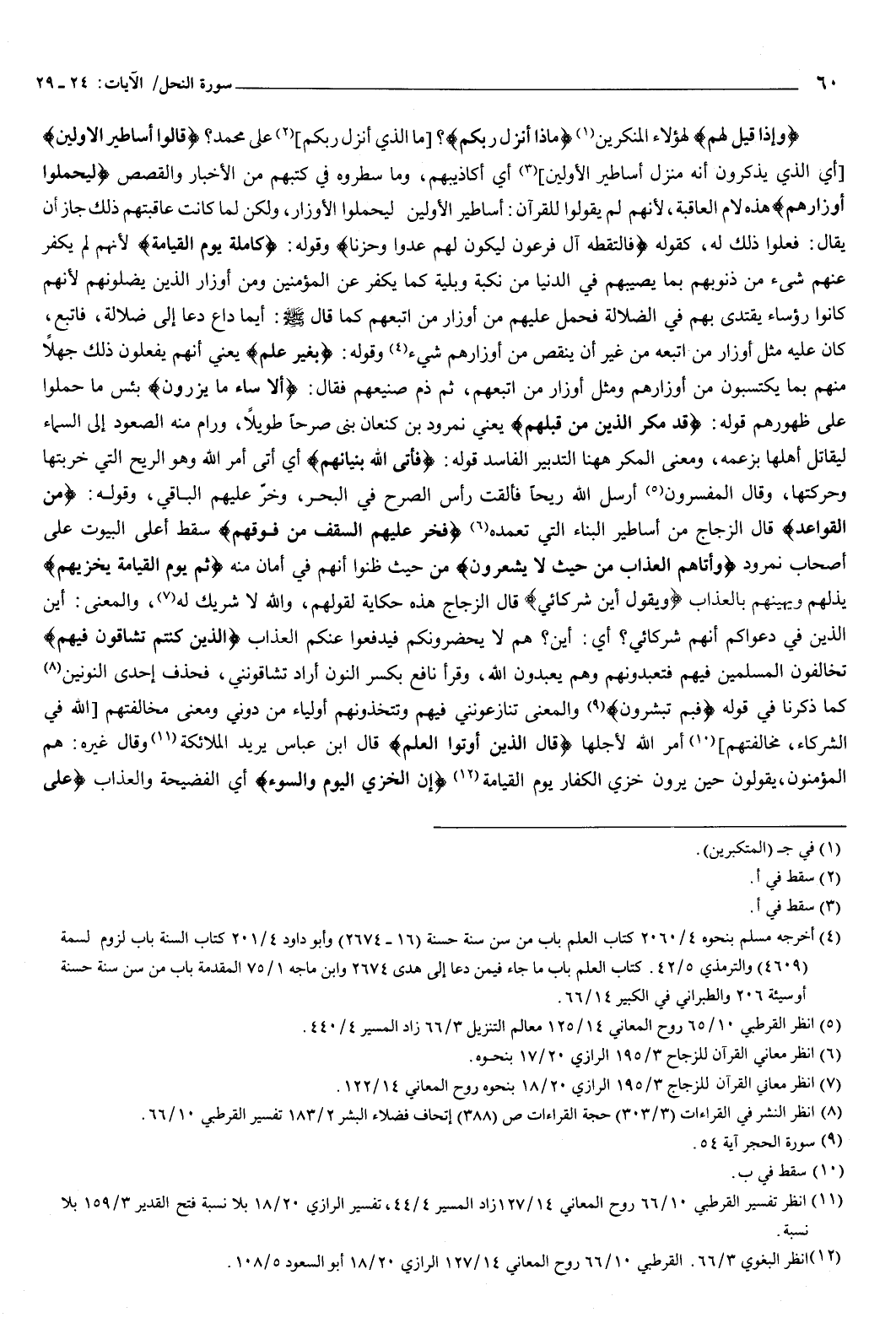 وَإِذَا قِيلَ لَهُمْ} [النحل: 24] لهؤلاء المنكرين، {مَاذَا أَنْزَلَ رَبُّكُمْ} [النحل: 24] ما الذي أنزل ربكم على محمد؟ {قَالُوا أَسَاطِيرُ الأَوَّلِينَ} [النحل: 24] أي: الذي يذكرون أنه منزل أساطير الأولين، أي: أكاذيبهم وما سطروه في كتبهم من الأخبار والقصص.