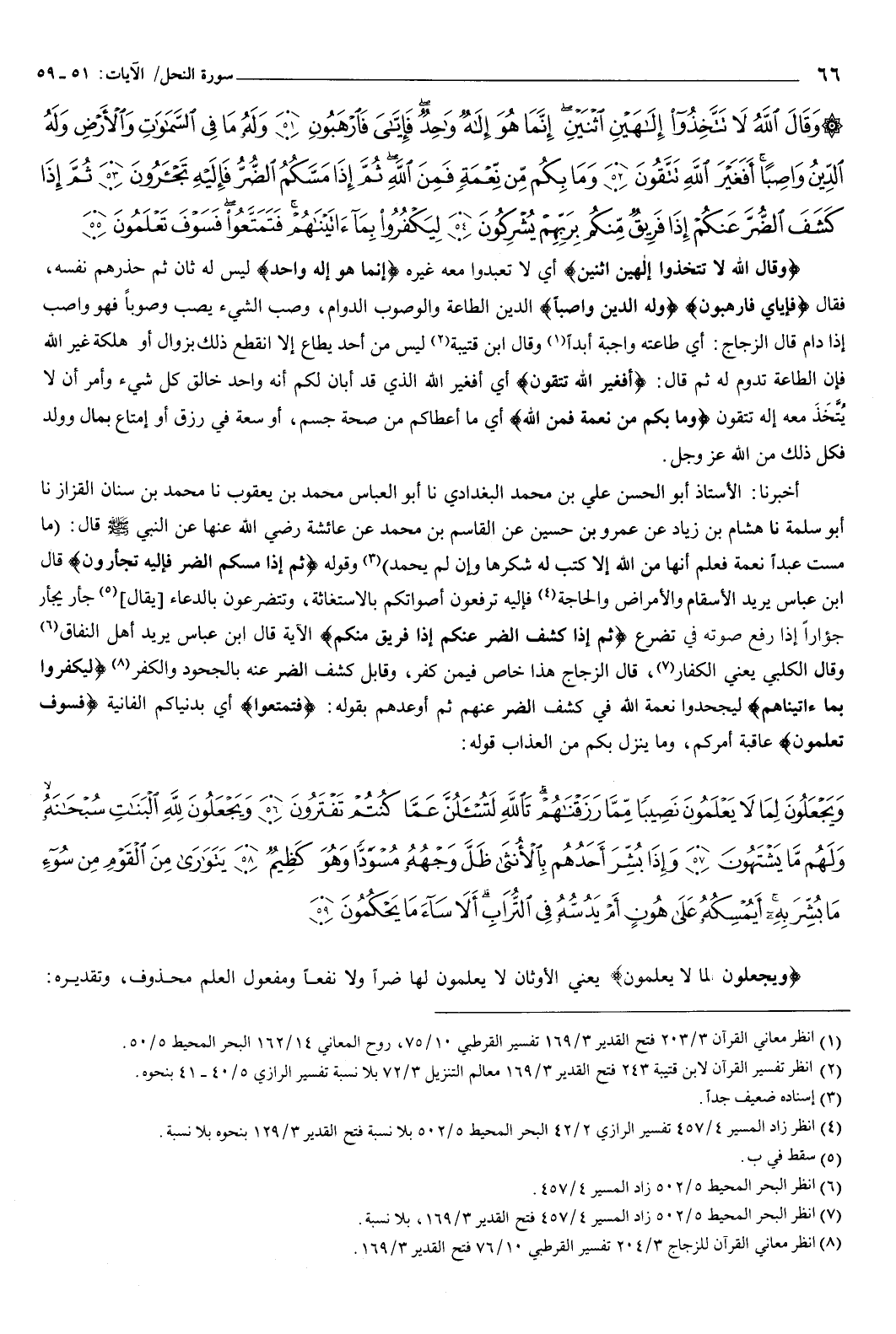 وَقَالَ اللَّهُ لا تَتَّخِذُوا إِلهَيْنِ اثْنَيْنِ إِنَّمَا هُوَ إِلهٌ وَاحِدٌ فَإِيَّايَ فَارْهَبُونِ {51} وَلَهُ مَا فِي السَّمَوَاتِ وَالأَرْضِ وَلَهُ الدِّينُ وَاصِبًا أَفَغَيْرَ اللَّهِ تَتَّقُونَ {52} وَمَا بِكُمْ مِنْ نِعْمَةٍ فَمِنَ اللَّهِ ثُمَّ إِذَا مَسَّكُمُ الضُّرُّ فَإِلَيْهِ تَجْأَرُونَ {53} ثُمَّ إِذَا كَشَفَ الضُّرَّ عَنْكُمْ إِذَا فَرِيقٌ مِنْكُمْ بِرَبِّهِمْ يُشْرِكُونَ {54} لِيَكْفُرُوا بِمَا آتَيْنَاهُمْ فَتَمَتَّعُوا فَسَوْفَ تَعْلَمُونَ {55} } [النحل: 51-55] {وَقَالَ اللَّهُ لا تَتَّخِذُوا إِلهَيْنِ اثْنَيْنِ} [النحل: 51] أي لا تعبدوا معه غيره، {إِنَّمَا هُوَ إِلهٌ وَاحِدٌ} [النحل: 51] ليس له ثان، ثم حذرهم نفسه، فقال: {فَإِيَّايَ فَارْهَبُونِ} [النحل: 51] .