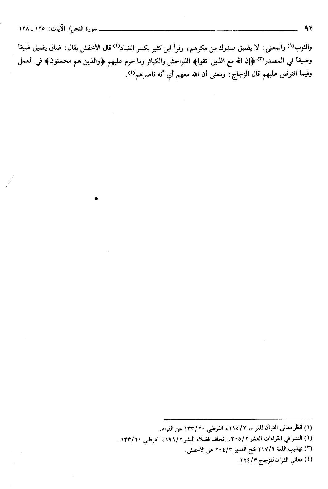 {إِنَّ اللَّهَ مَعَ الَّذِينَ اتَّقَوْا} [النحل: 128] الفواحش والكبائر وما حرم عليهم، {وَالَّذِينَ هُمْ مُحْسِنُونَ} [النحل: 128] فِي العمل، وفيما افترض عليهم، قال الزجاج: ومعنى أن الله معهم أي أنه ناصرهم.