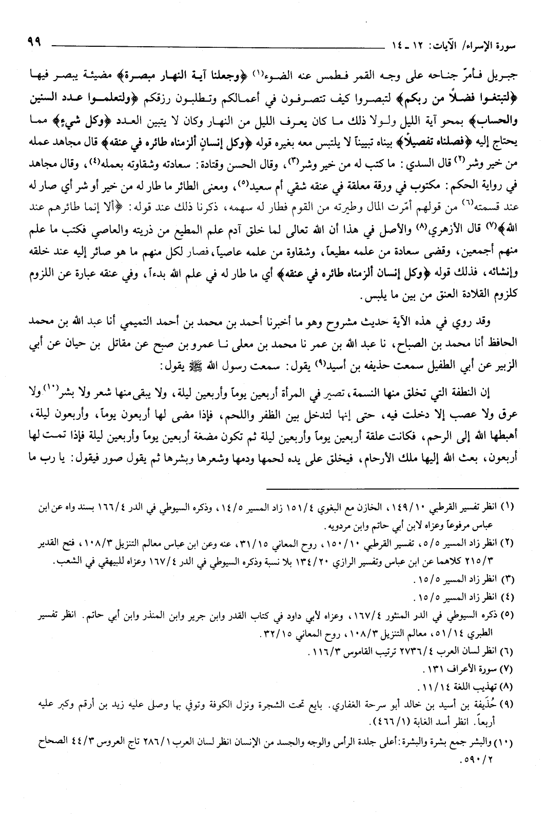 قوله: {وَكُلَّ إِنْسَانٍ أَلْزَمْنَاهُ طَائِرَهُ فِي عُنُقِهِ} [الإسراء: 13] قال مجاهد: عمله من خير وشر.
