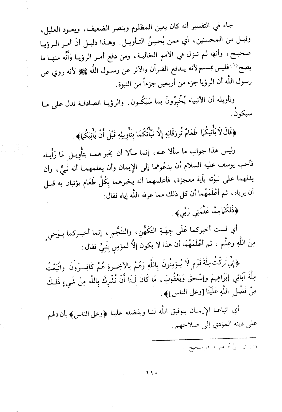 (قَالَ لَا يَأْتِيكُمَا طَعَامٌ تُرْزَقَانِهِ إِلَّا نَبَّأْتُكُمَا بِتَأْوِيلِهِ قَبْلَ أَنْ يَأْتِيَكُمَا ذَلِكُمَا مِمَّا عَلَّمَنِي رَبِّي إِنِّي تَرَكْتُ مِلَّةَ قَوْمٍ لَا يُؤْمِنُونَ بِاللَّهِ وَهُمْ بِالْآخِرَةِ هُمْ كَافِرُونَ (37)