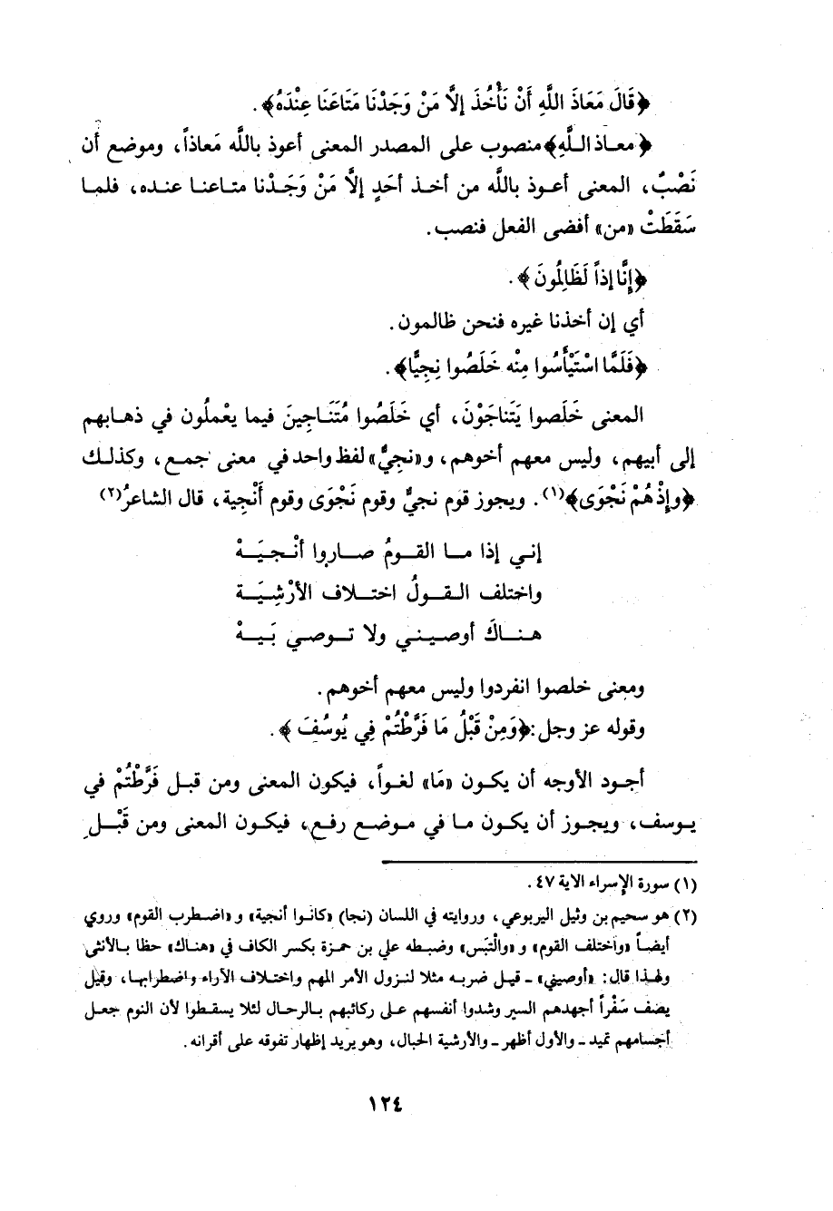 إلى أبيهم، وليس معهم أخوهم، و " نجِيٌّ " لفظ واحد في معنى جمع، وكذلك (وإذْ هُمْ نَجْوَى).