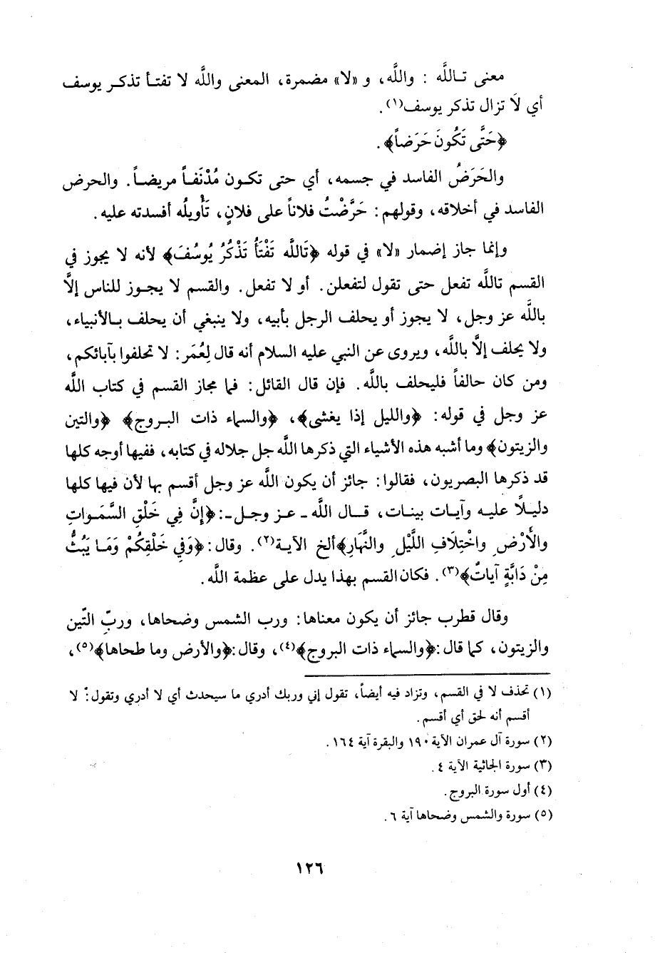 ففيها أوجه كلها قد ذكرها البصريون، فقالوا: جائز أن يكون اللَّه عزَّ وجلَّ أقسم بها لأن فيها كلها دليلًا عليه وآيات بينات، قال اللَّه - عزَّ وجلَّ -: (إِنَّ فِي خَلْقِ السَّمَاوَاتِ وَالْأَرْضِ وَاخْتِلَافِ اللَّيْلِ وَالنَّهَارِ) إلخ الآية.