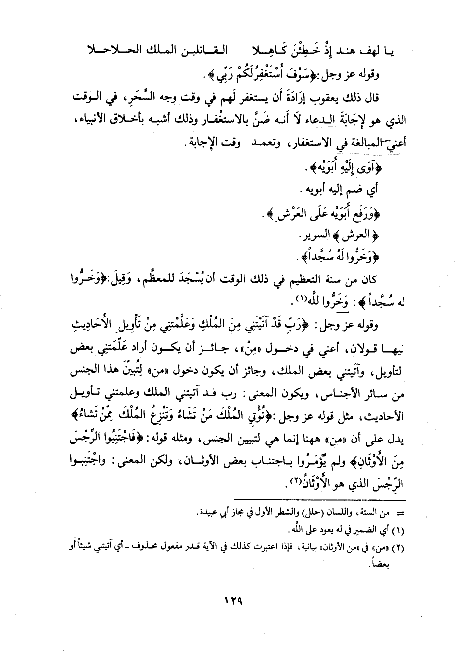 وجائز أن يكون دخول " مِنْ " لِتُبين هذا الجنس من سائر الأجناس، ويكون المعنى: رب فد آتيتني الملك وعلمتني تأويل الأحاديث، مثل قوله عزَّ وجلَّ: (تُؤْتِي الْمُلْكَ مَنْ تَشَاءُ وَتَنْزِعُ الْمُلْكَ مِمَّنْ تَشَاءُ)