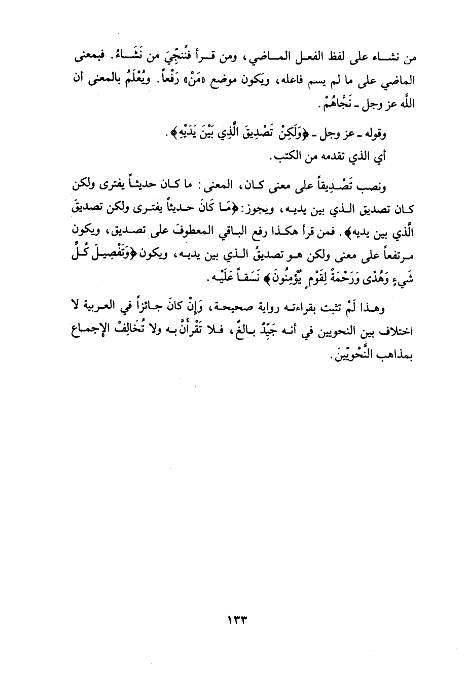 ويجوز: (مَا كَانَ حَدِيثًا يُفْتَرَى وَلَكِنْ تَصْدِيقَ الَّذِي بَيْنَ يَدَيْهِ).