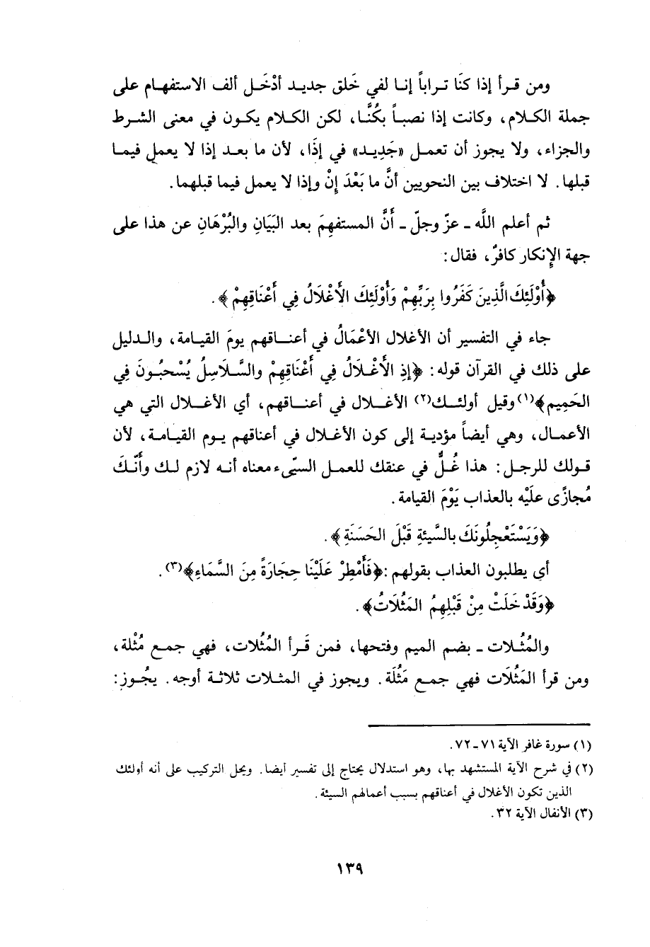 (أُولَئِكَ الَّذِينَ كَفَرُوا بِرَبِّهِمْ وَأُولَئِكَ الْأَغْلَالُ فِي أَعْنَاقِهِمْ).