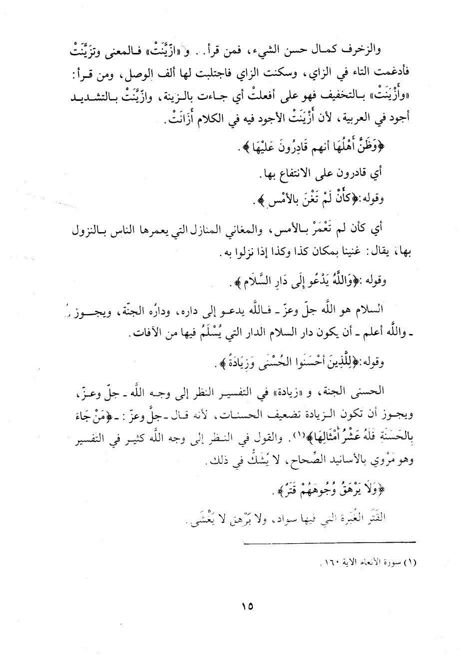 فأدغمت التاء في الزاي، وسكنت الزاي فاجتلبت لها ألف الوصل، ومن قرأ: " وأَزْيَنَتْ " بالتخفيف فهو على أفعلتْ أي جاءت بالزينة، وازَّيَّنَتْ بالتشديد أجود في العربية، لأن أزيَنَتْ الأجود فيه في الكلام أزانَتْ.