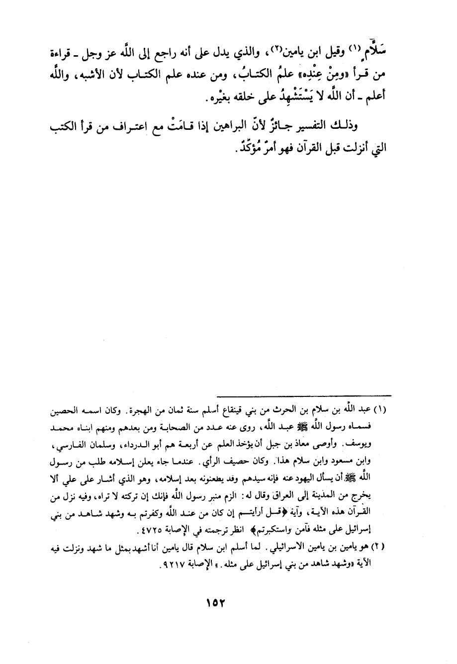والمراد بمَنْ عنده عِلْمُ الكتاب: إمَّا ابنُ سَلام أو جبريلُ أو اللهُ تعالى. قال ابن عطية: «ويُعْتَرض هذا القولُ بأنَّ فيه عطفَ الصفة على الموصوف ولا يجوز، وإنما تُعْطَفُ الصفاتُُ». واعترض الشيخُ عليه بأنَّ «مَنْ» لا يُوصَفُ بها ولا بغيرِها من الموصولات إلاَّ ما اسْتُثْني، وبأنَّ عطفَ الصفاتِ بعضِها على بعض لا يجوز إلا بشرطِ الاختلاف.