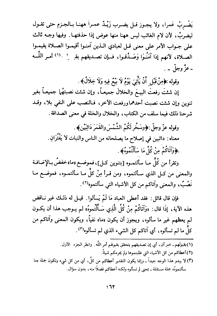 قيل له ذلك غير ناقض هذه الآية، إذَا قال: (وَآتَاكُمْ مِنْ كُل الذِي سَالتُموه) لم يوجب هذا أن يكون لم يعطهم غير ما سألوه، ويجوز أن يكون " ما " نفياً، ويكون المعنى وآتاكم من كل ما لم تسألوه، أي آتاكم كل الشيء الذي لم تسألوه.