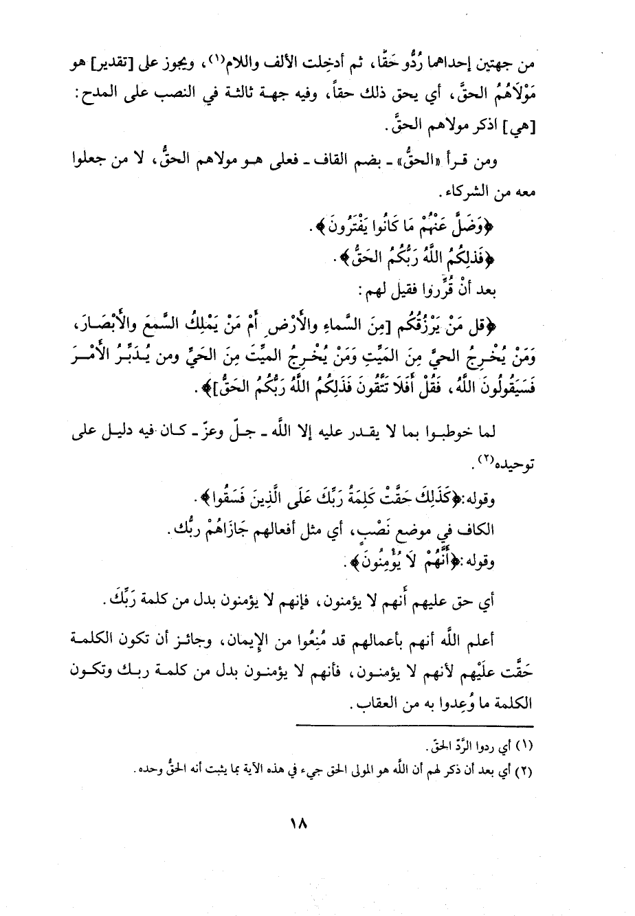 ومن قرأ " الحقُّ " - بضم القاف - فعلى هو مولاهم الحق، لا من جعلوا
