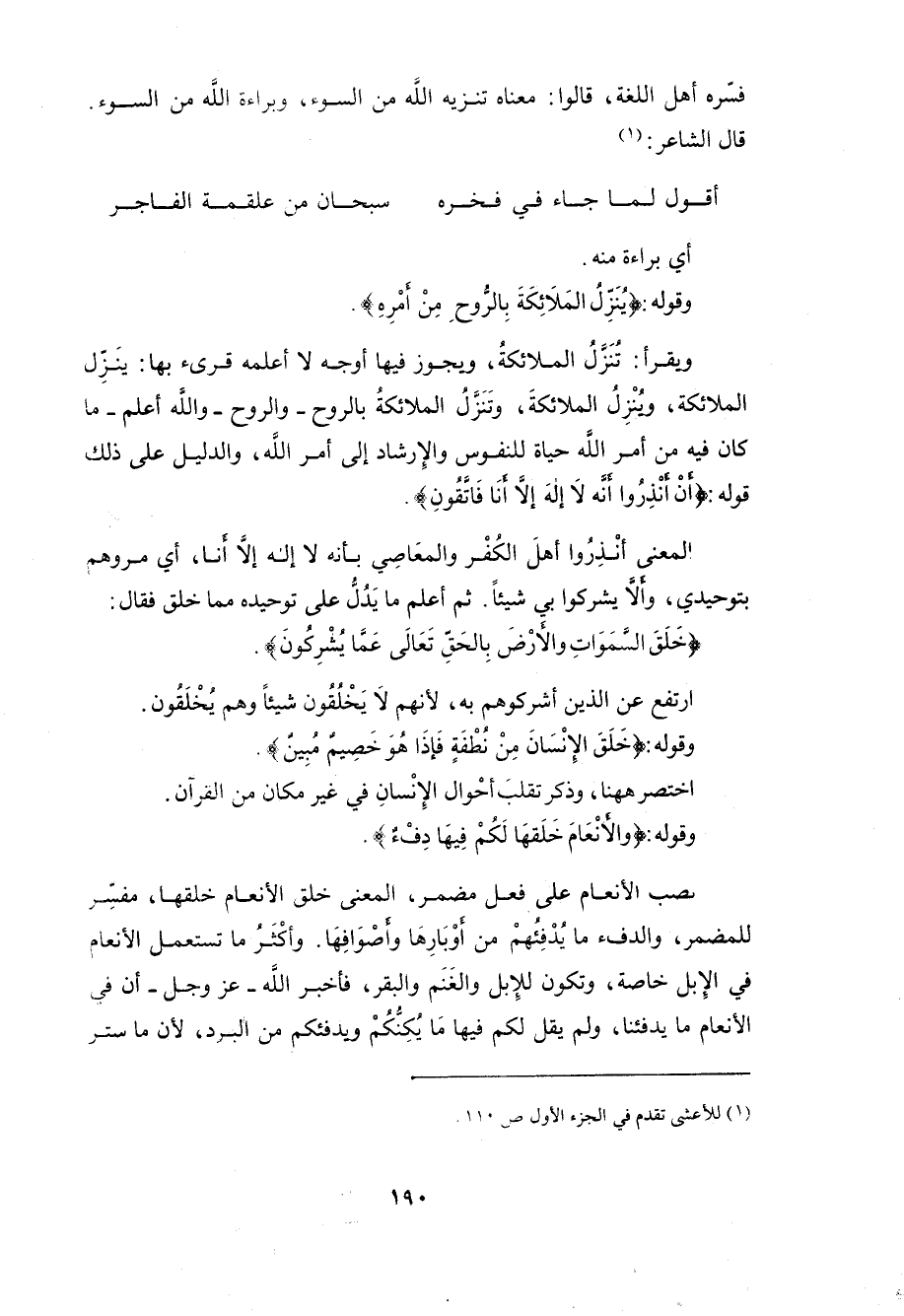 وقوله: (يُنَزِّلُ الْمَلَائِكَةَ بِالرُّوحِ مِنْ أَمْرِهِ عَلَى مَنْ يَشَاءُ مِنْ عِبَادِهِ أَنْ أَنْذِرُوا أَنَّهُ لَا إِلَهَ إِلَّا أَنَا فَاتَّقُونِ (2)