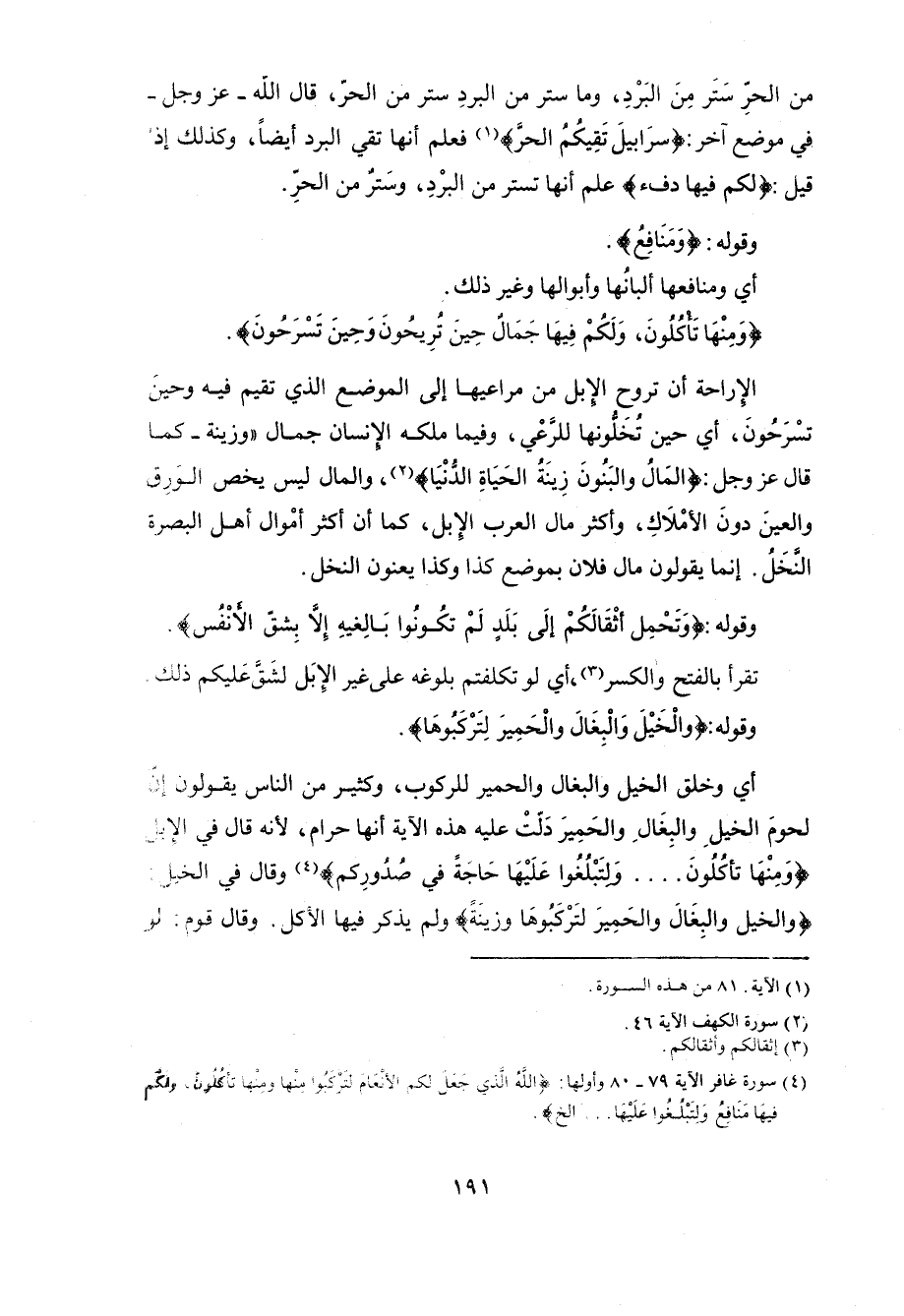 (وَمِنْهَا تَأْكُلُونَ (5) وَلَكُمْ فِيهَا جَمَالٌ حِينَ تُرِيحُونَ وَحِينَ تَسْرَحُونَ (6)
