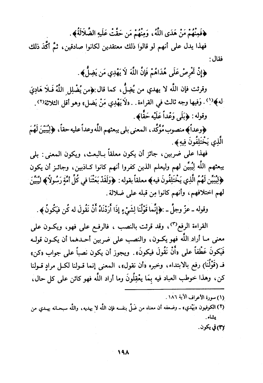وقوله - عزَّ وجلَّ -: (إِنَّمَا قَوْلُنَا لِشَيْءٍ إِذَا أَرَدْنَاهُ أَنْ نَقُولَ لَهُ كُنْ فَيَكُونُ (40)