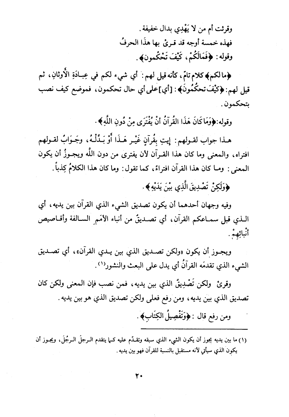 وقوله: (وَمَا كَانَ هَذَا الْقُرْآنُ أَنْ يُفْتَرَى مِنْ دُونِ اللَّهِ وَلَكِنْ تَصْدِيقَ الَّذِي بَيْنَ يَدَيْهِ وَتَفْصِيلَ الْكِتَابِ لَا رَيْبَ فِيهِ مِنْ رَبِّ الْعَالَمِينَ (37)