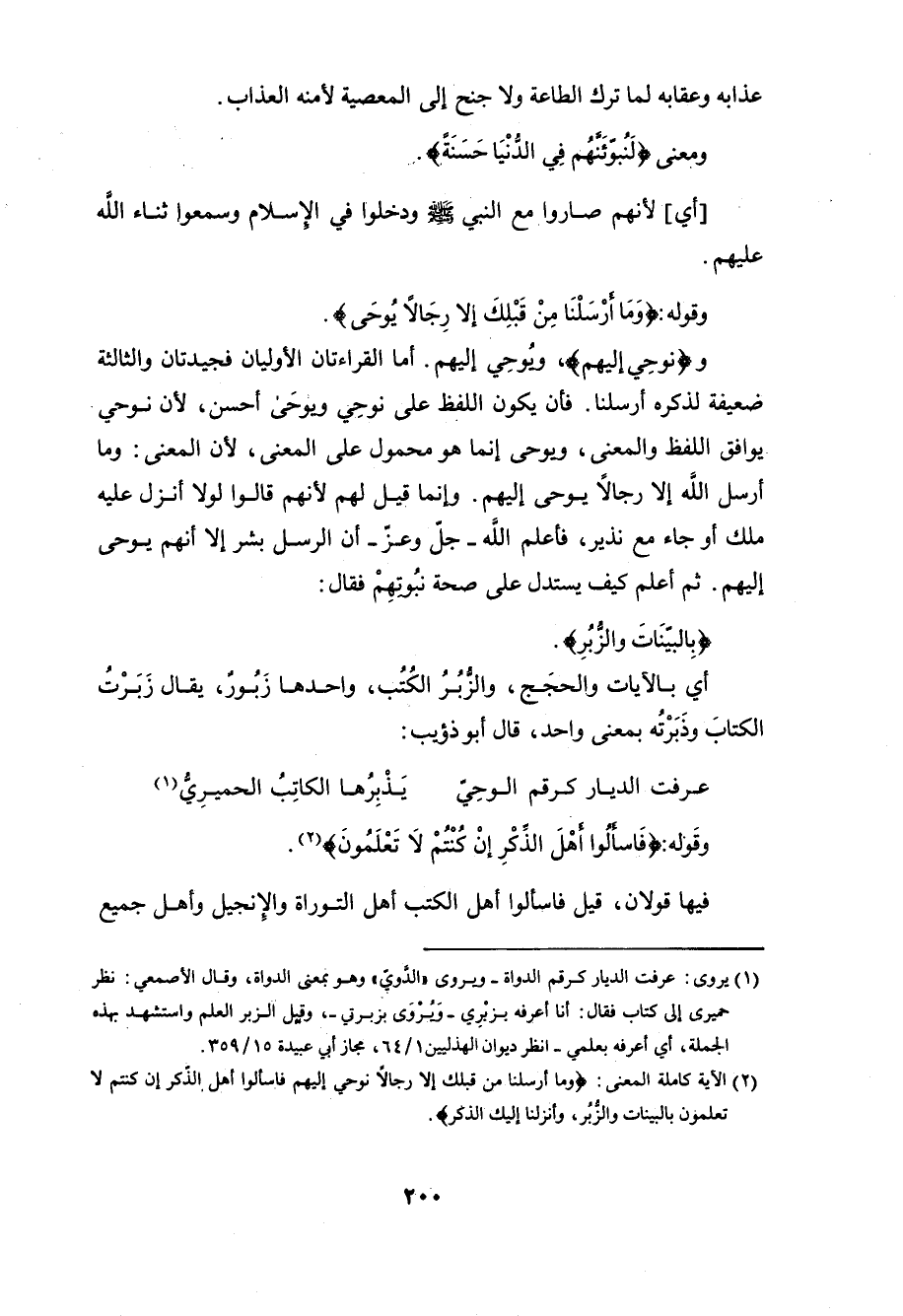 وقَوله: (فَاسْأَلُوا أَهْلَ الذِّكْرِ إِنْ كُنْتُمْ لَا تَعْلَمُونَ).